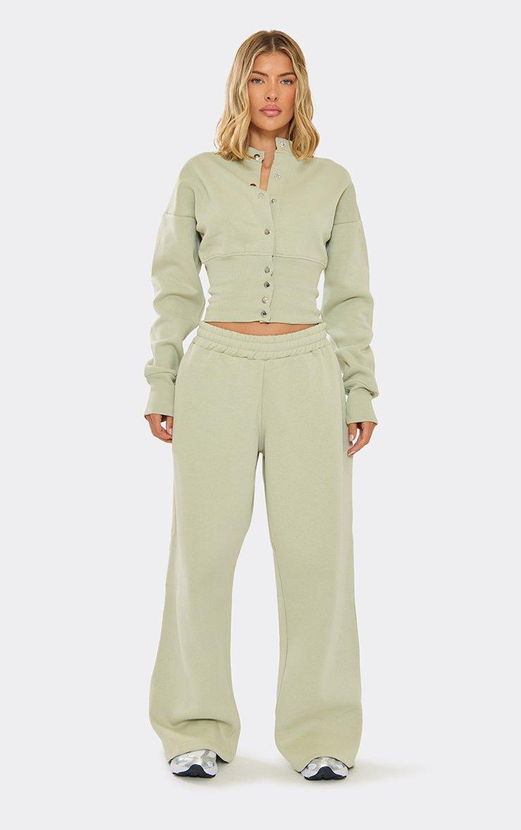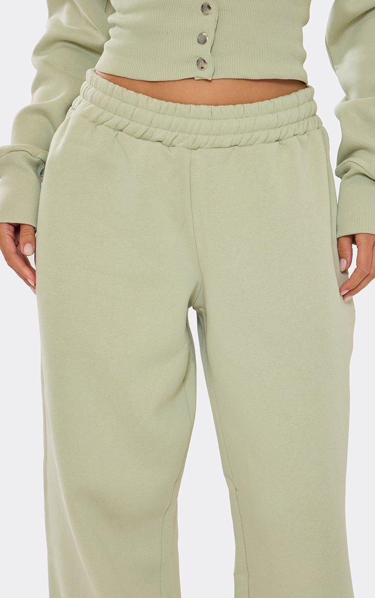Mid Rise Seam Detail Straight Leg Joggers In Sage Green