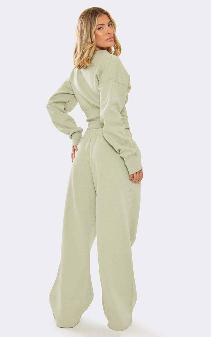 Mid Rise Graphic Detail Wide Leg Joggers In Olive Green