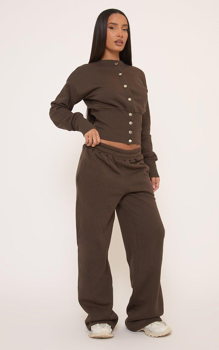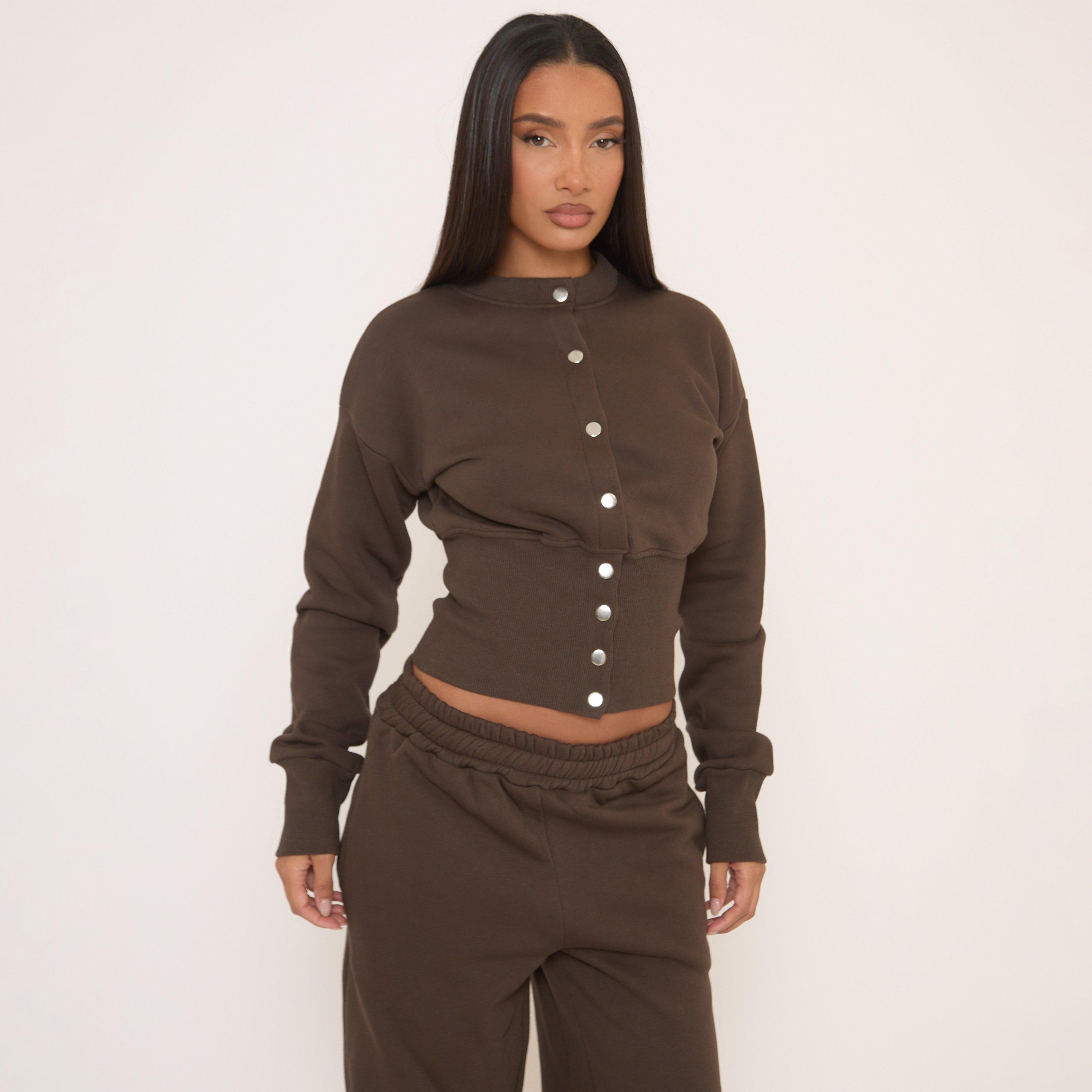 Long Sleeve Popper Detail Cinched Waist Sweatshirt In Brown