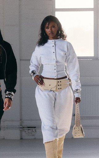 Long Sleeved Interlock Popper Detail Cinched Waist Sweatshirt In Grey