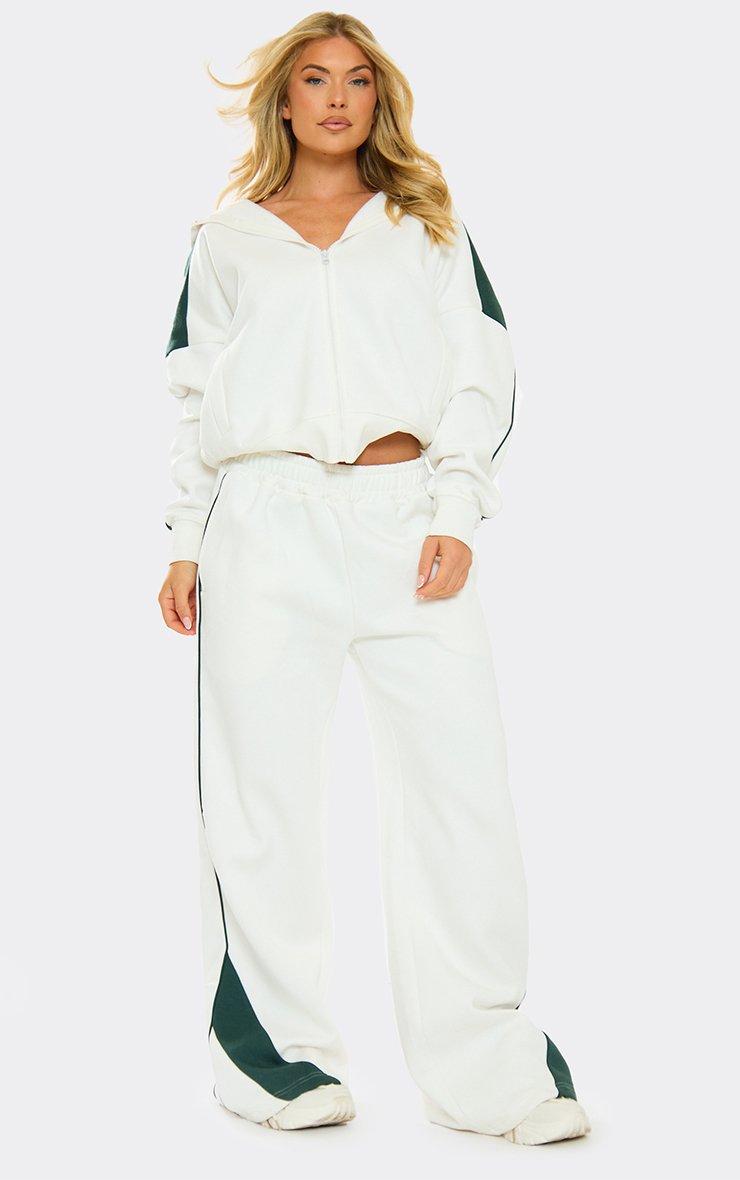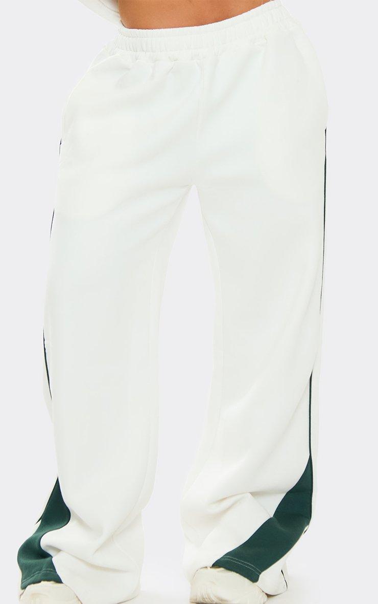 green contrast stripe straight leg joggers in cream