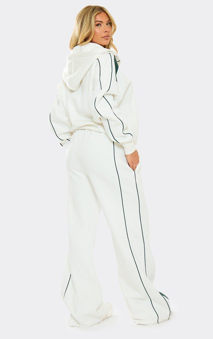 Mid Rise Contrast Piping Detail Wide Leg Joggers In Cream