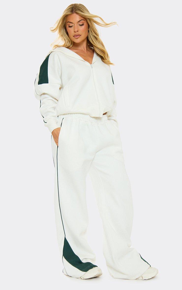 green contrast stripe zip through oversized hoodie in cream