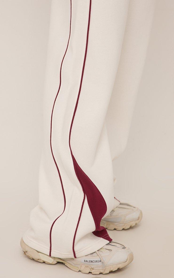 Mid Rise Contrast Piping Detail Wide Leg Joggers In Cream