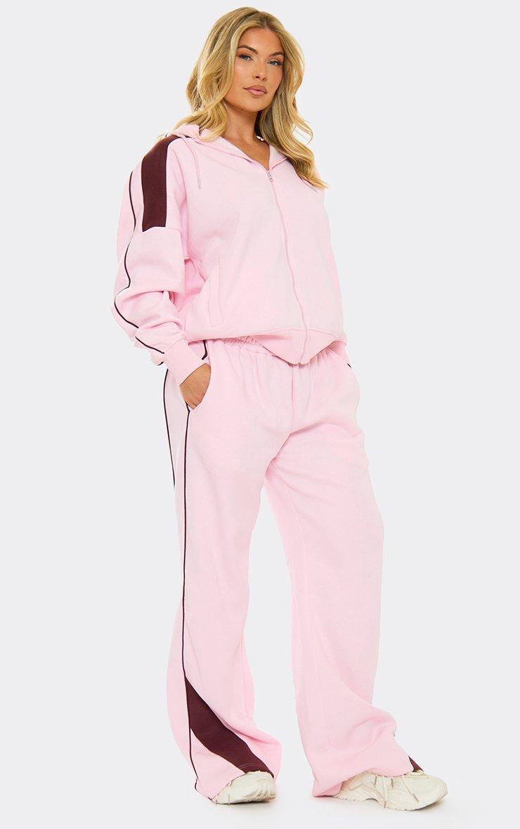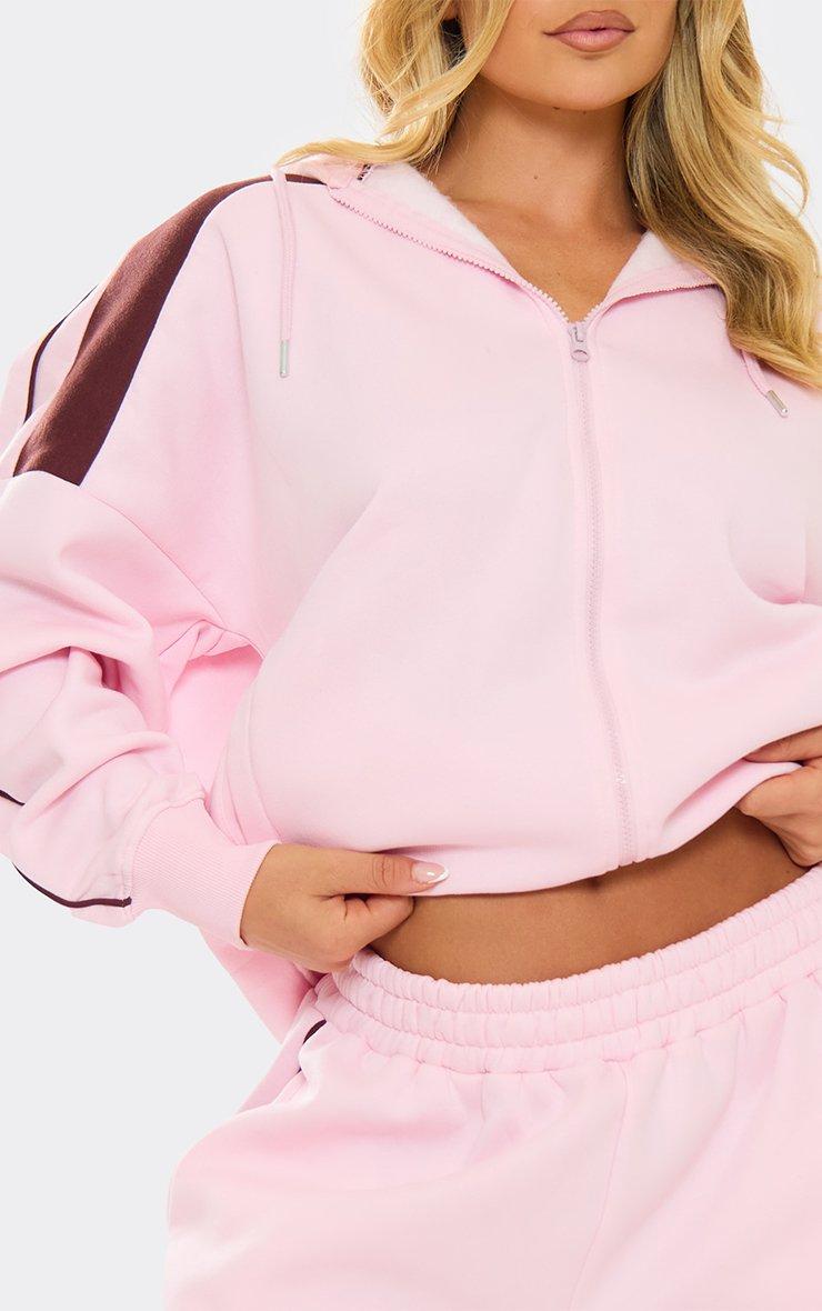 Oversized Contrast Stripe Side Essential Graphic Zip Up Hoodie In Pink