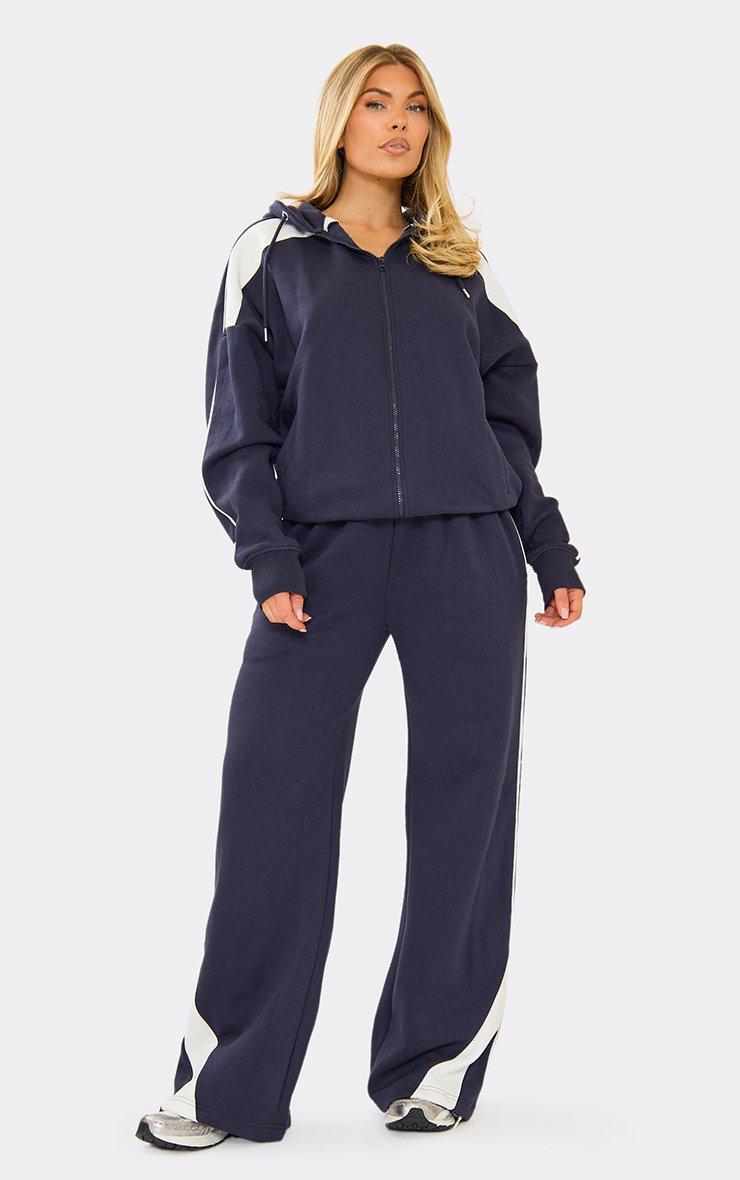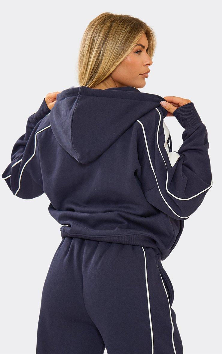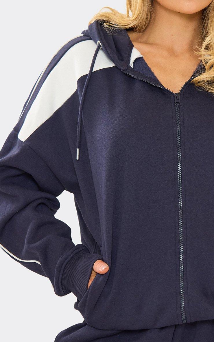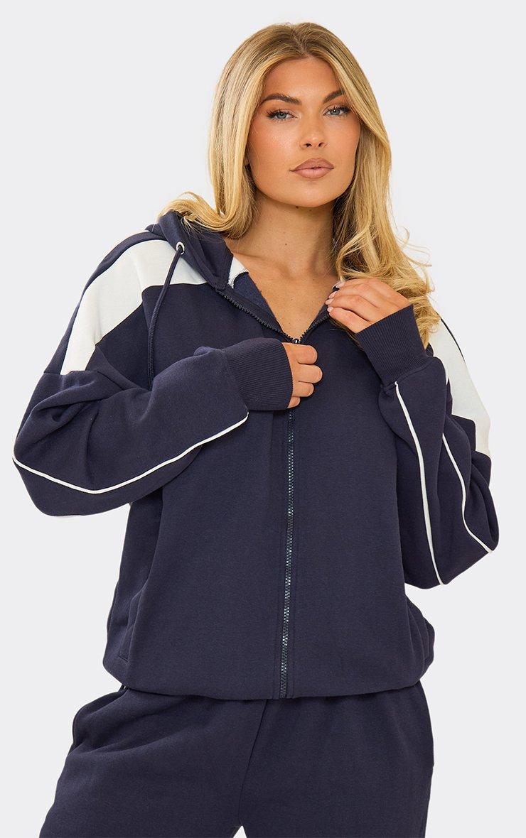 Contrast Stripe Zip Through Oversized Hoodie In Navy