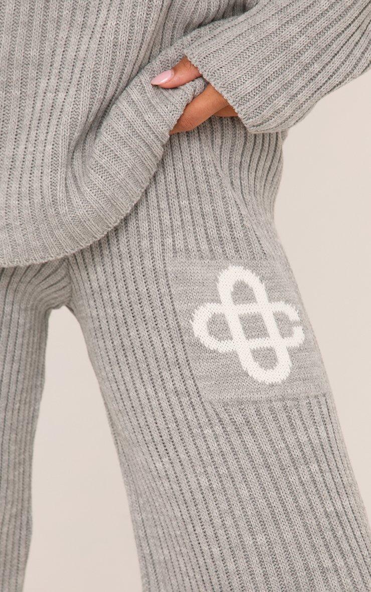 High Waist Embroidered Ego Logo Wide Leg Trousers In Grey Knit
