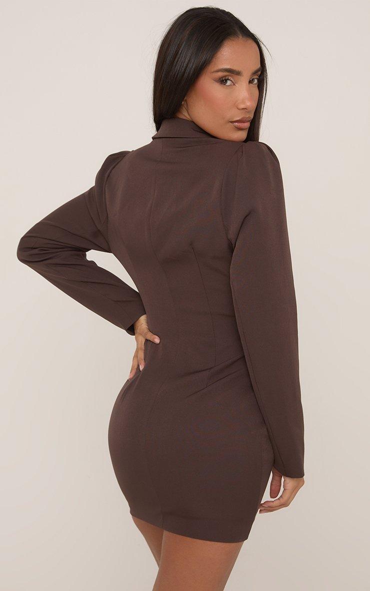 long sleeve button front cinched waist tailored blazer dress in chocolate brown