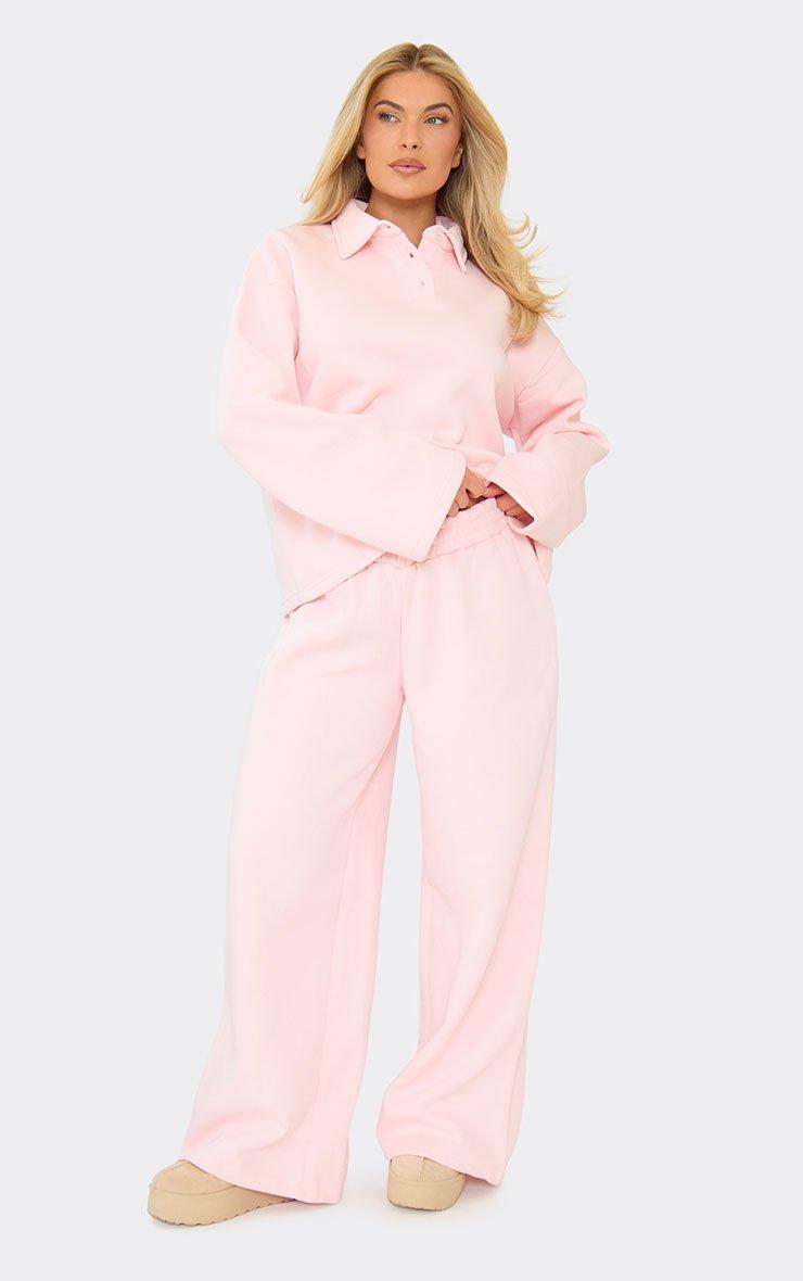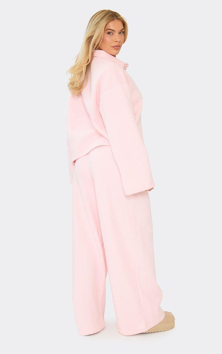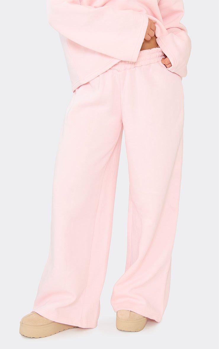 Low Rise Wide Leg Detail Joggers In Baby Pink
