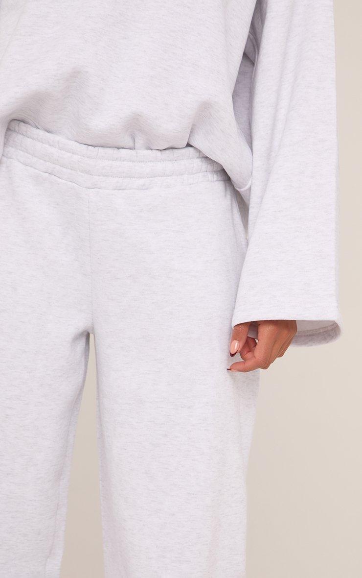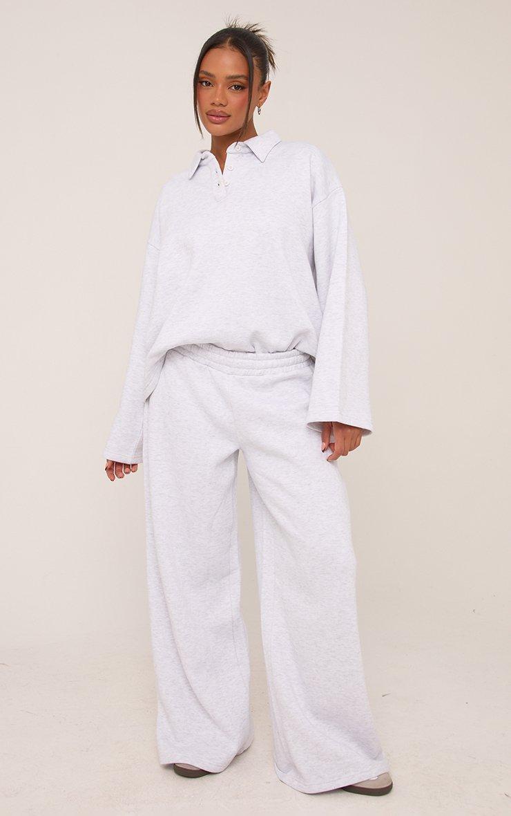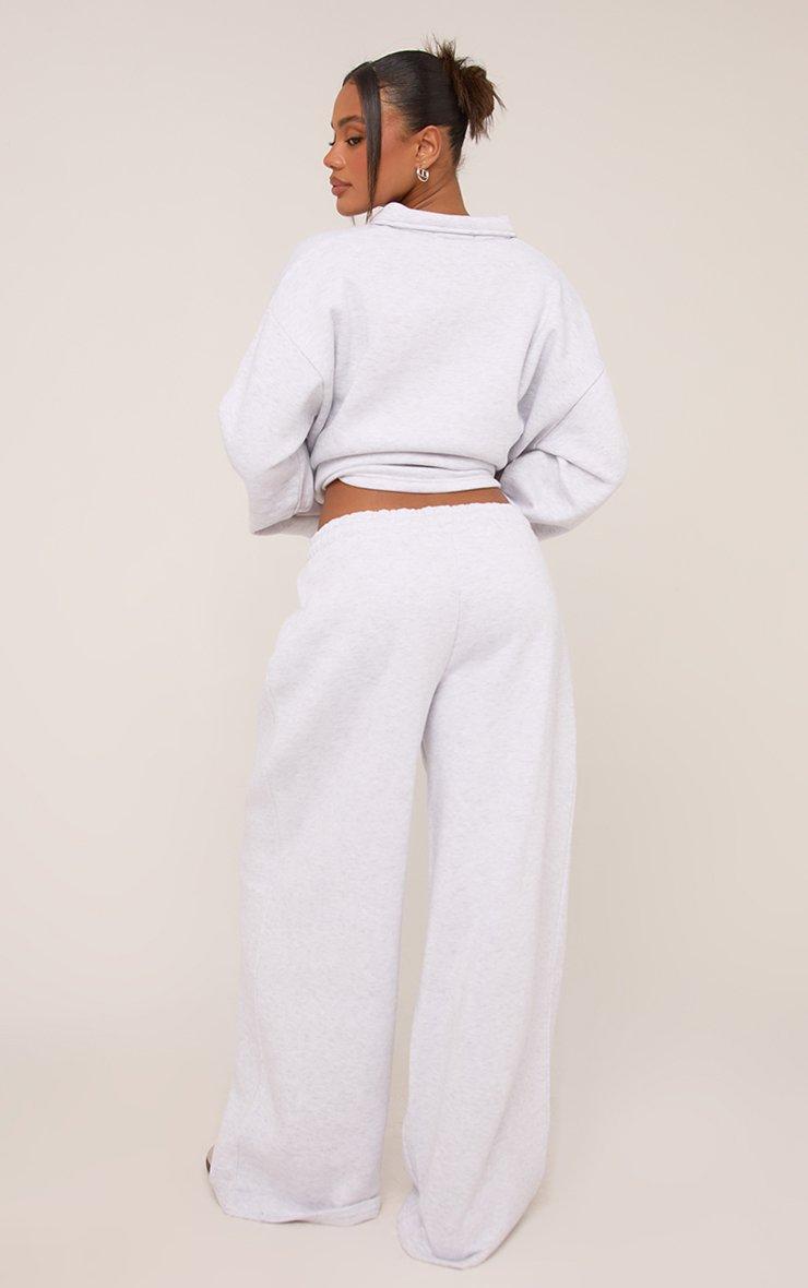 Mid Rise Contrast Piping Detail Wide Leg Joggers In Light Grey Marl