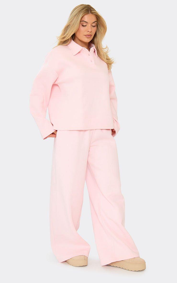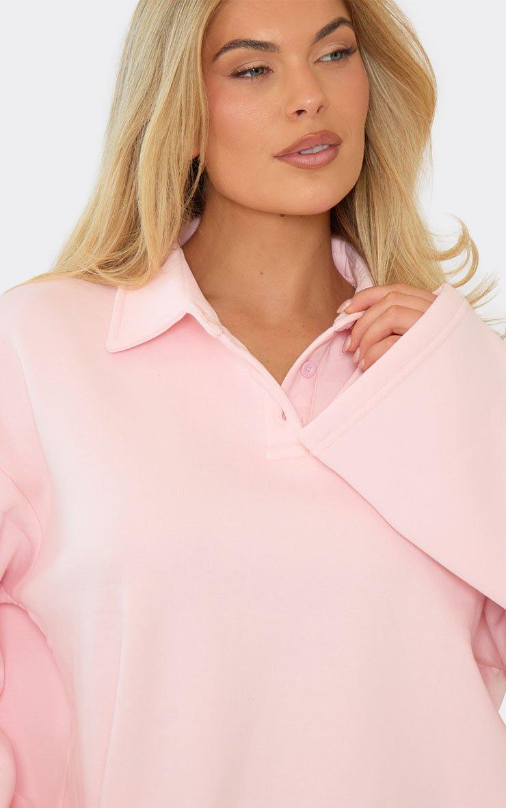 Short Sleeve Polo Collar Detail Oversized Sweatshirt In Pink