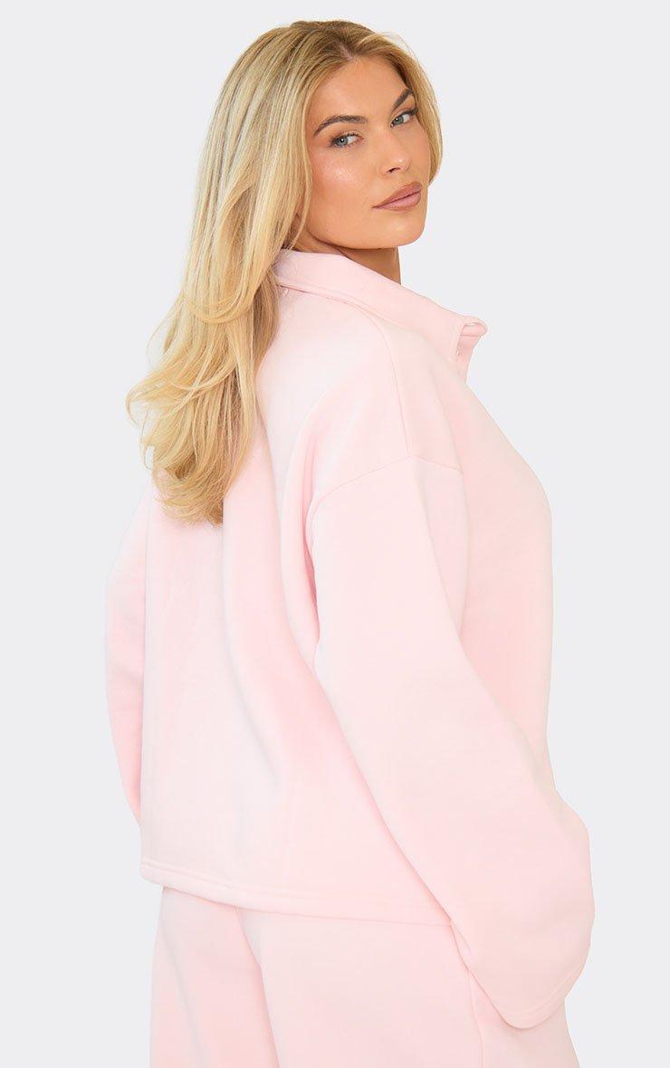 Long Sleeve Zip Up Sweatshirt In Baby Pink