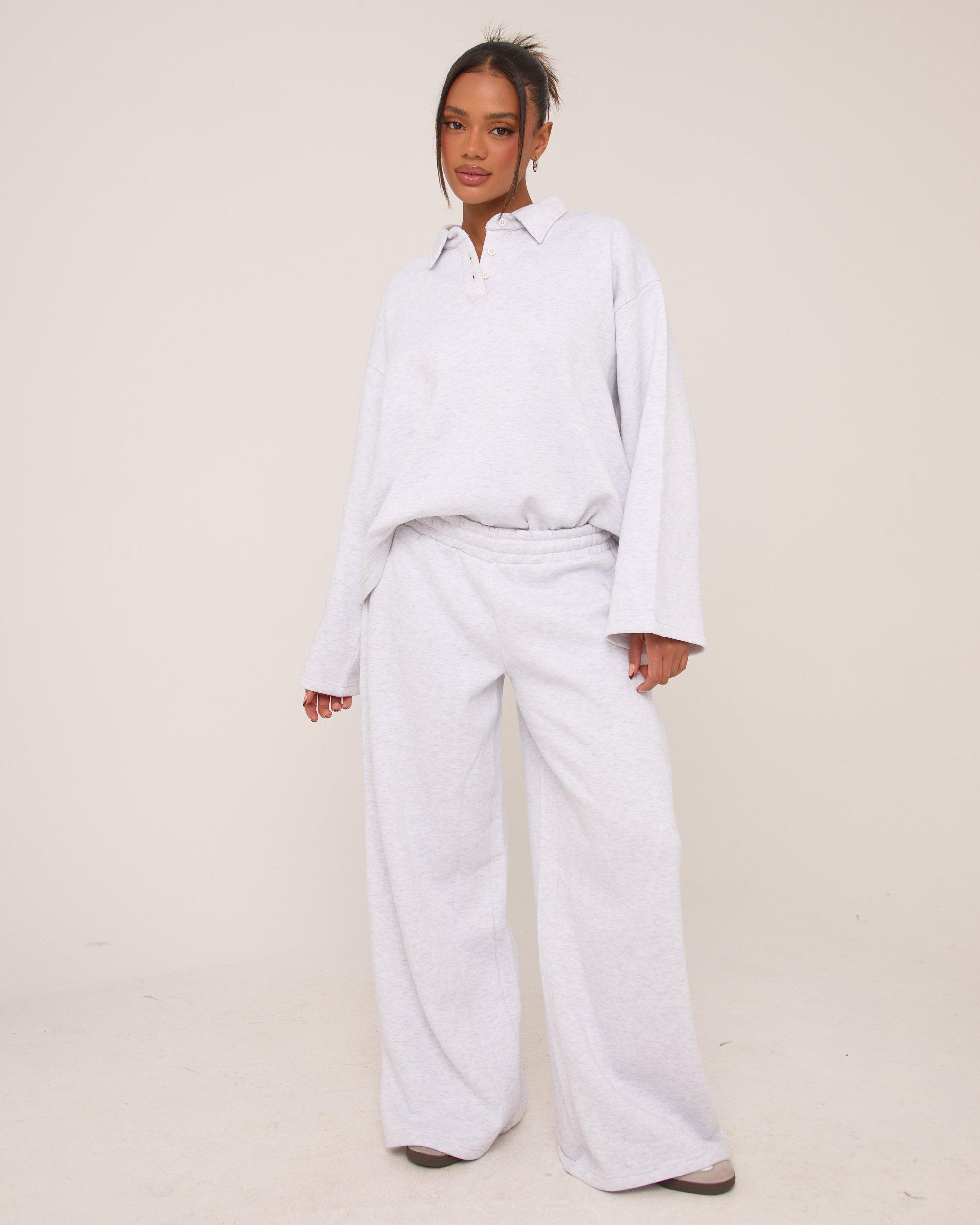 Mid Rise Pocket Detail Wide Leg Joggers In Light Grey Marl