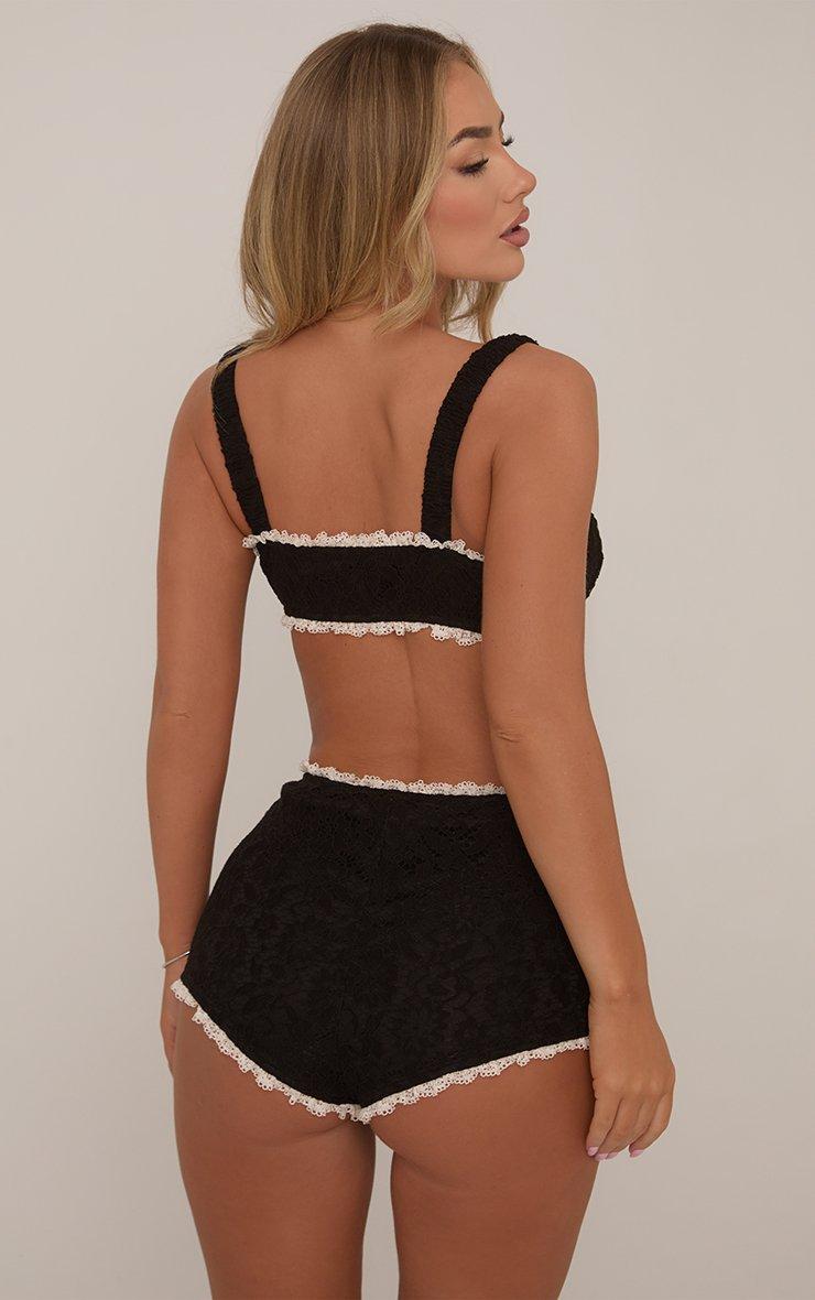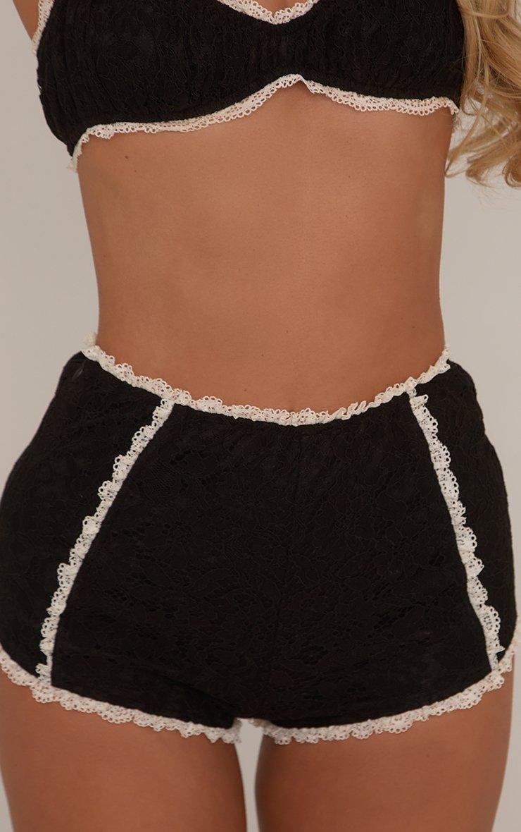 high waist contrast frilled trim detail shorts in black lace