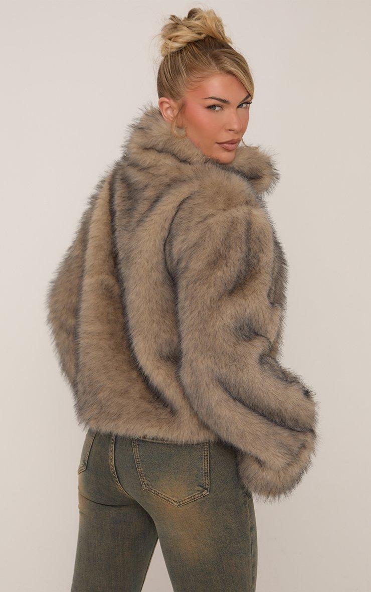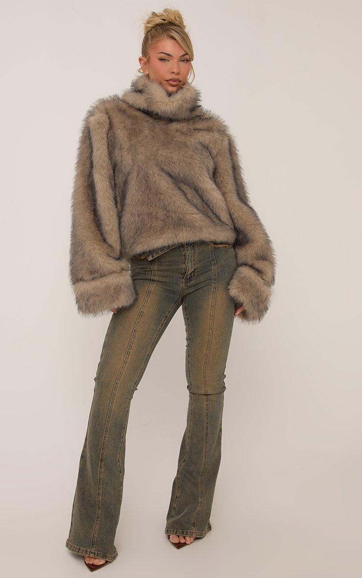 Oversized High Neck Top In Brown Faux Fur