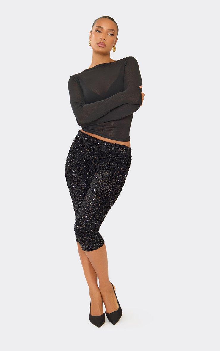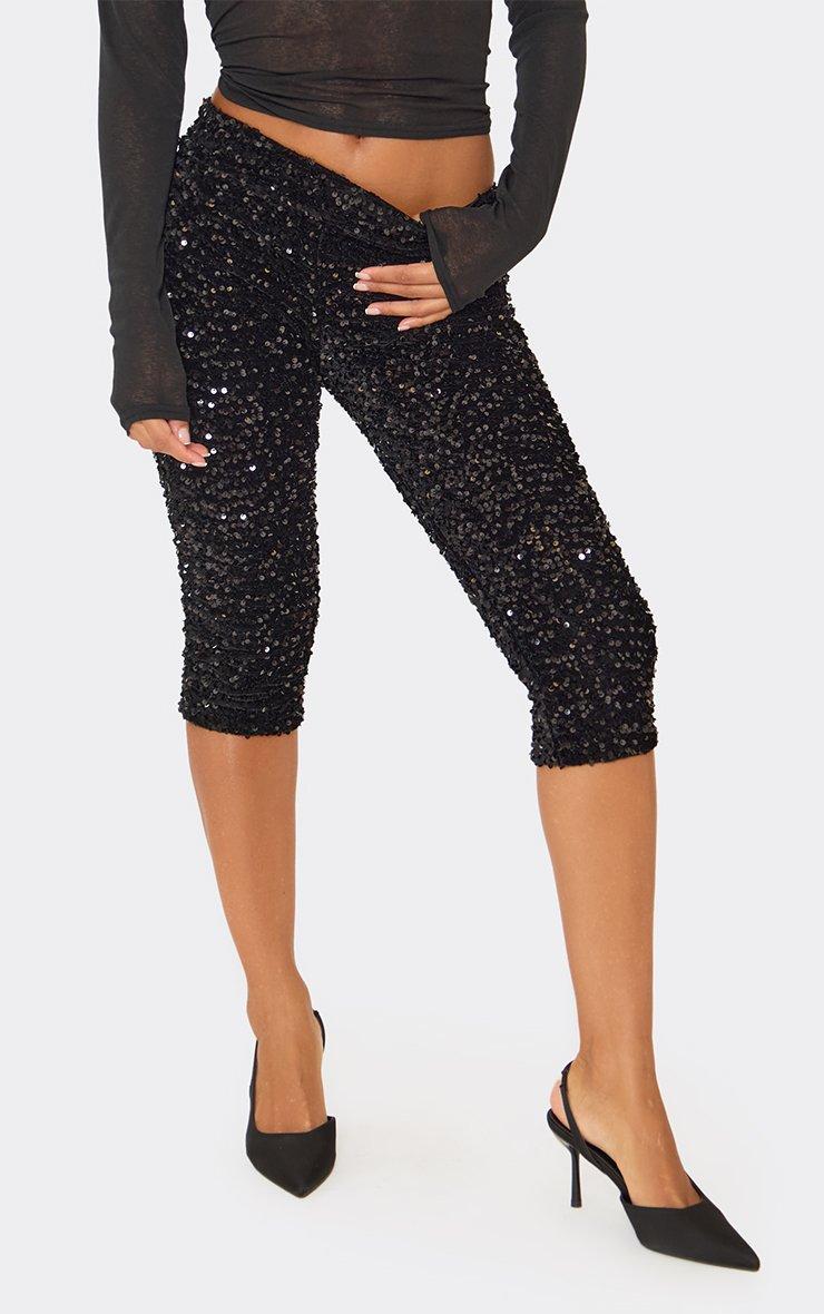 Low Rise Capri Leggings In Black Sequin