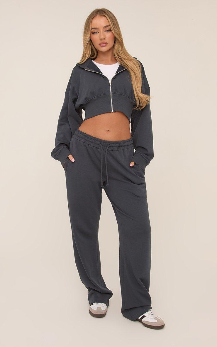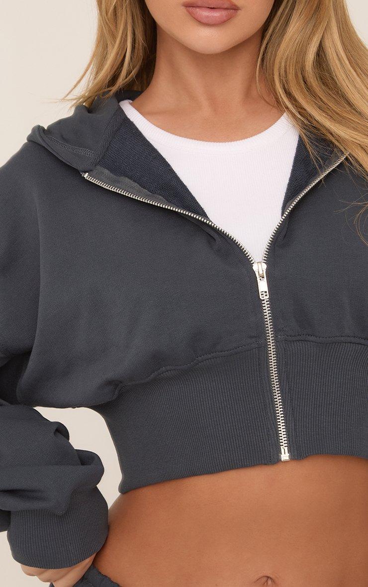 Long Sleeve Zip Front Cropped Hoodie In Midnight Blue