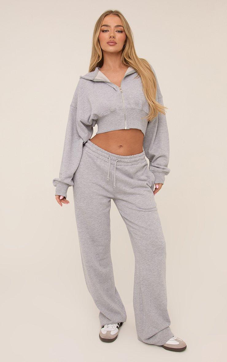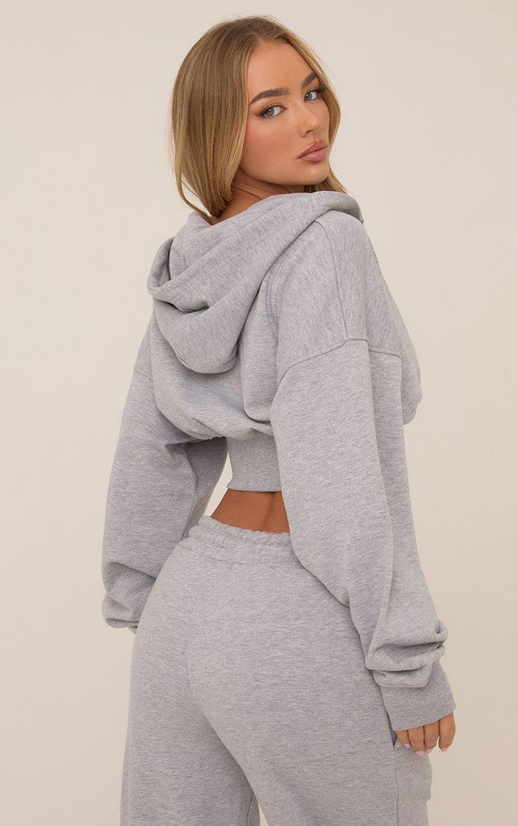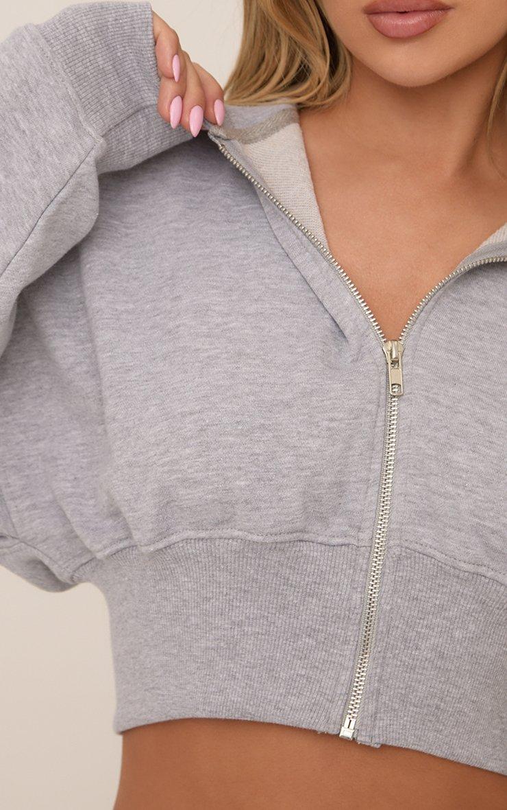 Long Sleeve Zip Front Cropped Hoodie In Grey