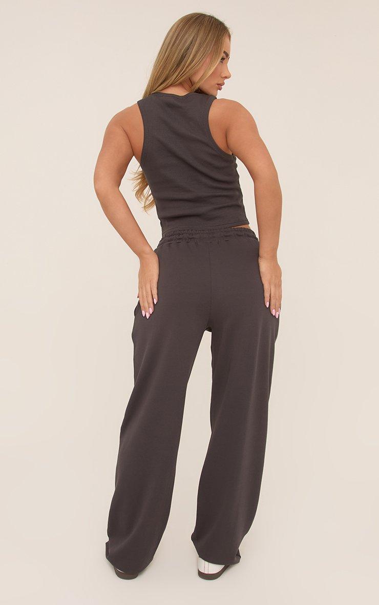 Drawstring Waist Straight Leg Joggers In Charcoal