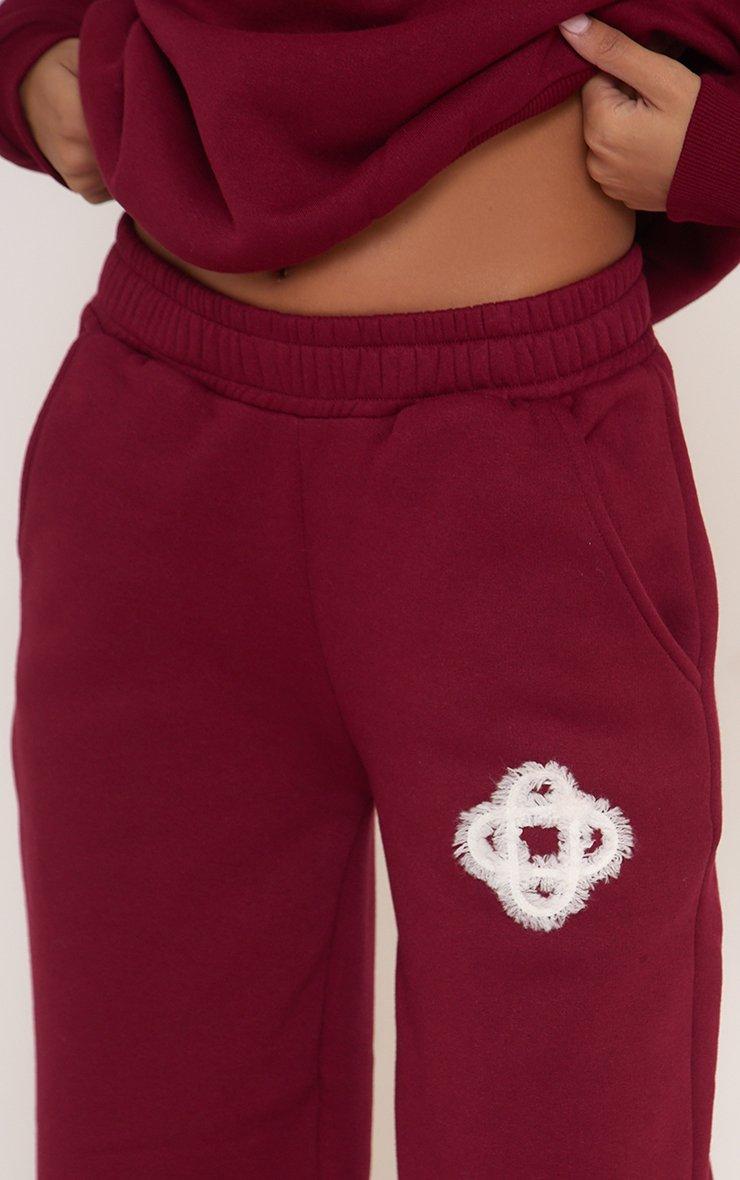 Oversized Tie Waist Contrast Stripe Wide Leg Joggers In Burgundy