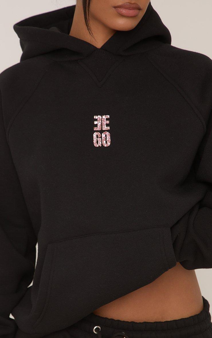 Long Sleeve Graphic Detail Zip Up Cropped Hoodie In Black