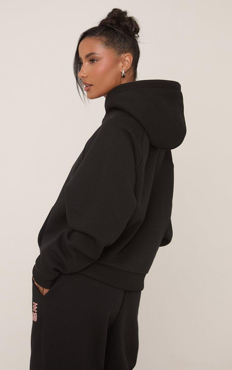 Long Sleeve Oversized Zip Detail Cropped Hoodie In Black