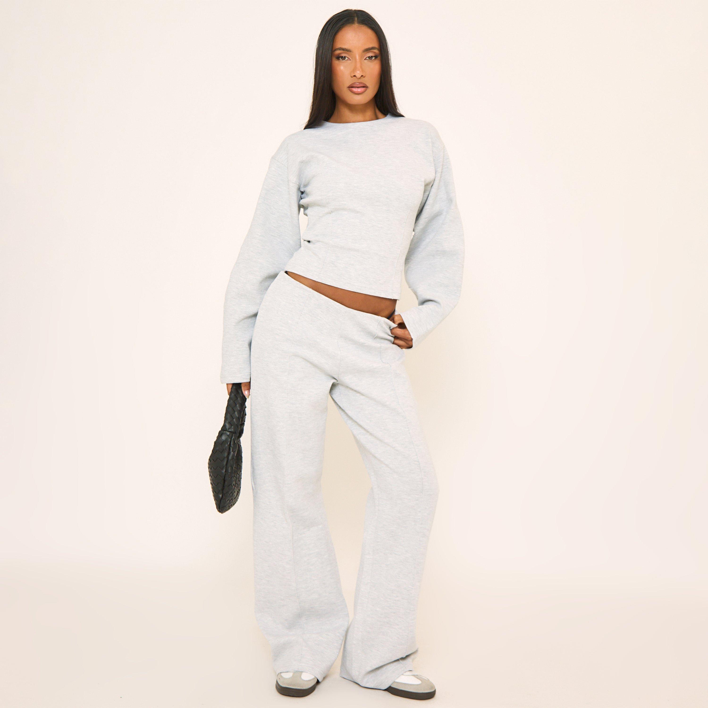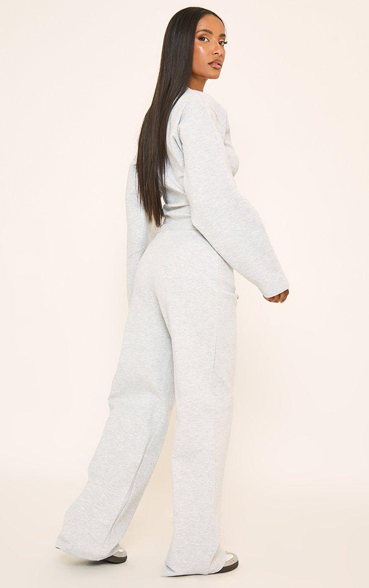 Mid Rise Contrast Piping Detail Wide Leg Joggers In Light Grey Marl