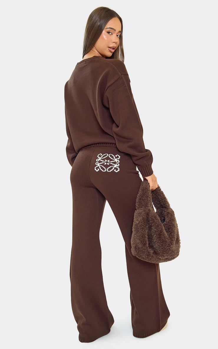 High Waist Wide Leg Trousers In Chocolate Brown Knit