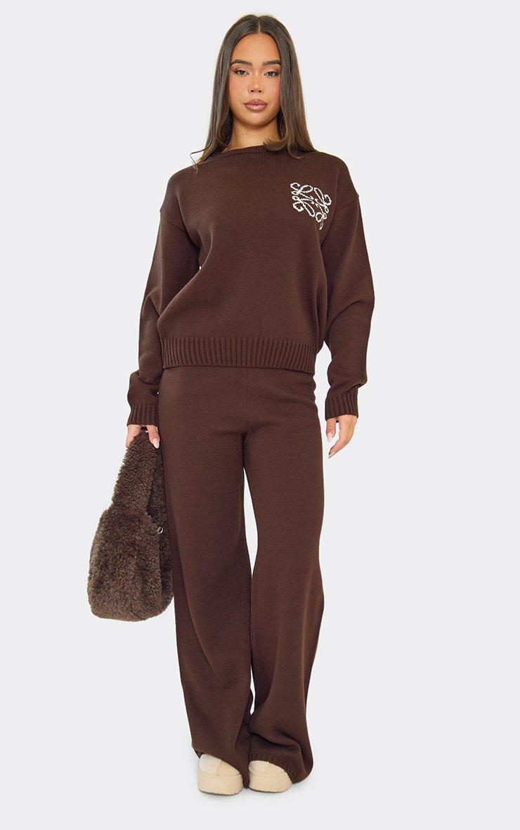 Oversized Embroidered Ego Logo Jumper In Chocolate Brown Knit