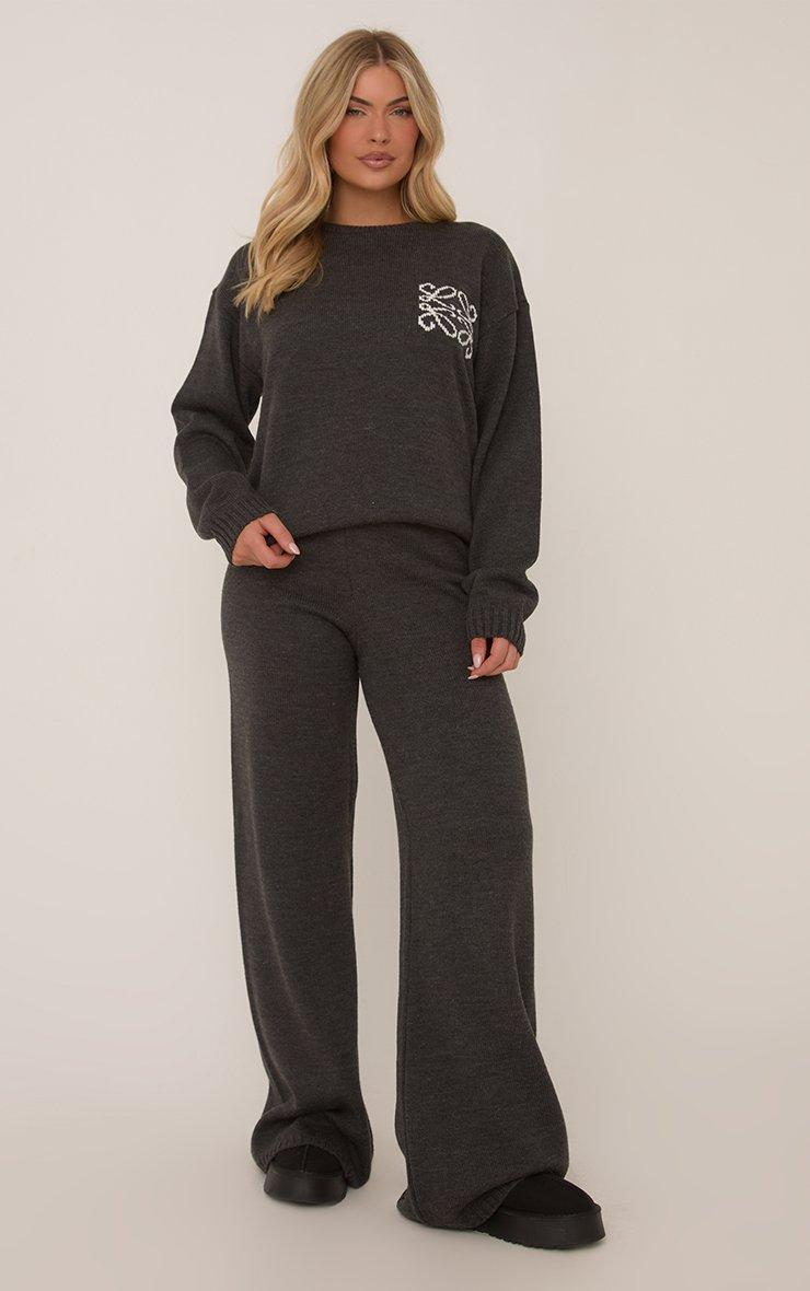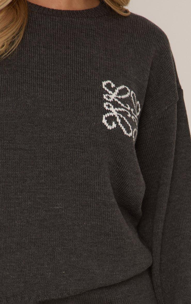 Long Sleeve Swirl Detail Oversized Jumper In Charcoal Grey Knit