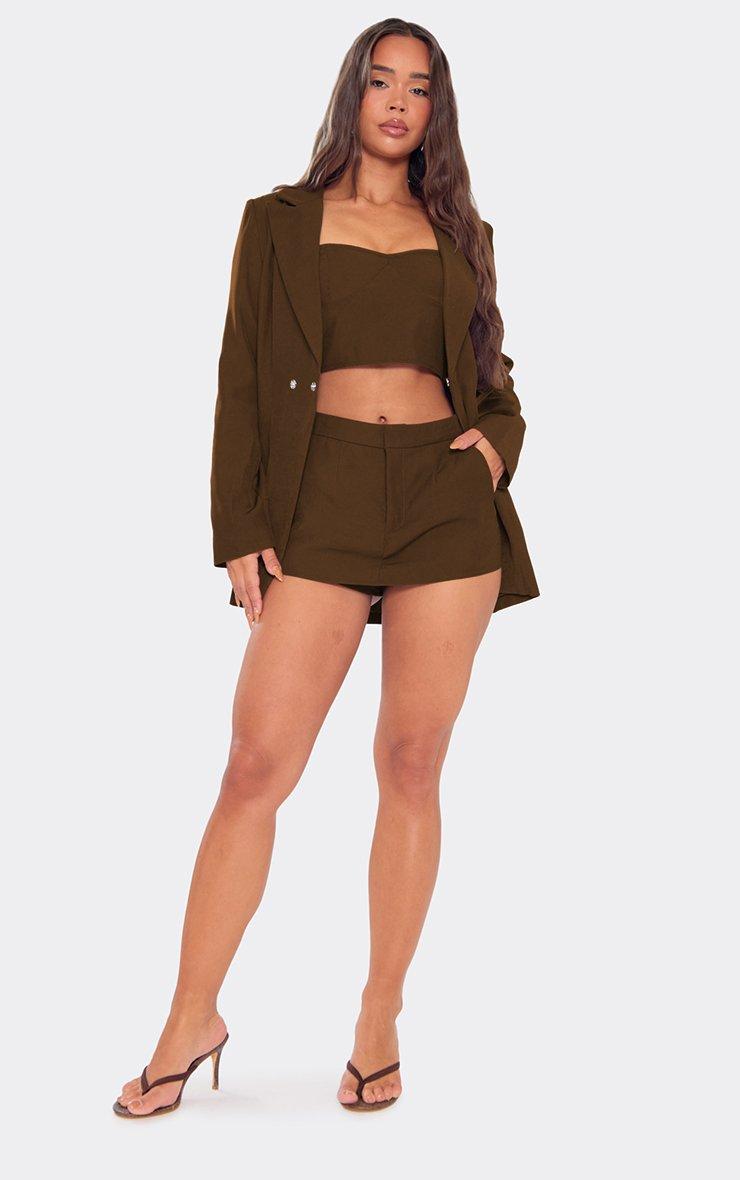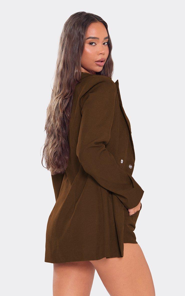 Long Sleeve Pocket Detail Oversized Blazer In Chocolate Brown