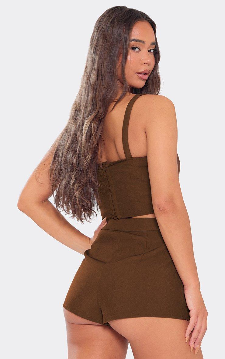 Long Sleeve Popper Detail Cinched Waist Sweatshirt In Chocolate Brown