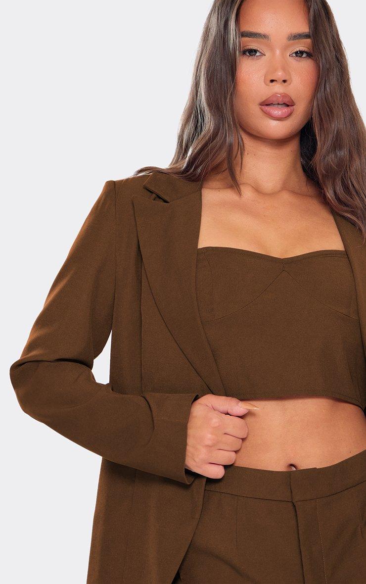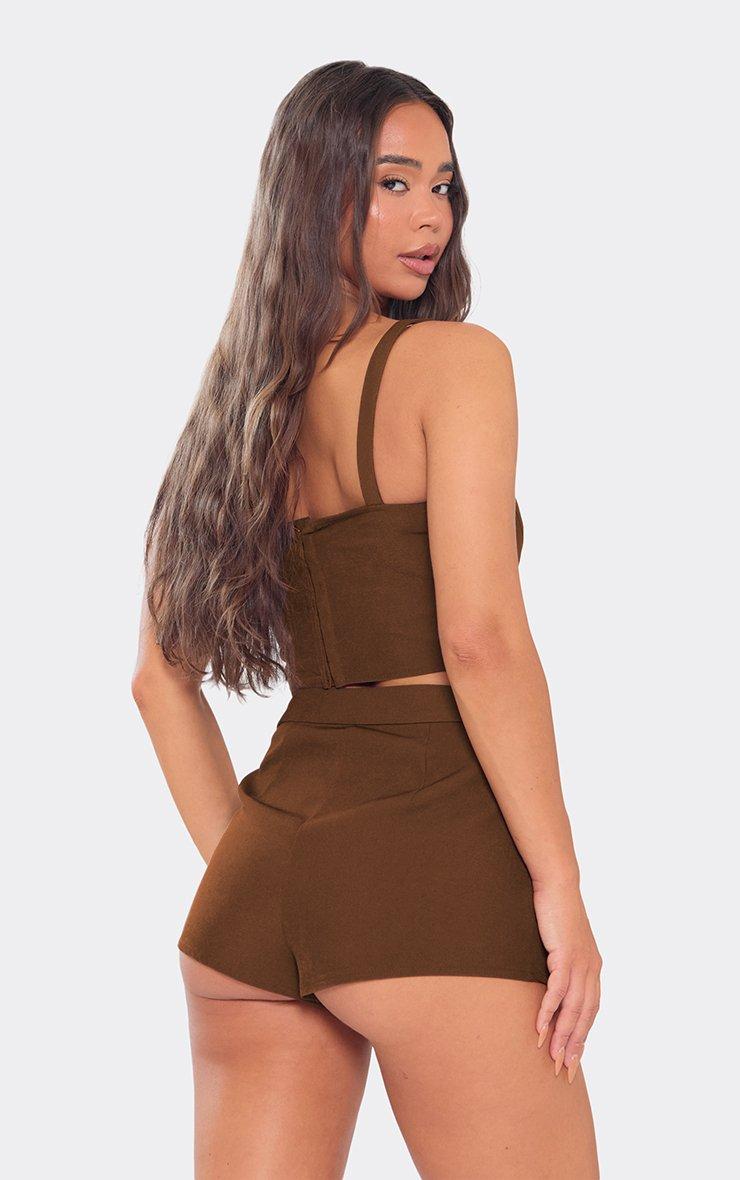 Sweetheart Neckline Tailored Crop Top In Chocolate Brown