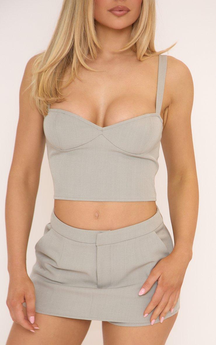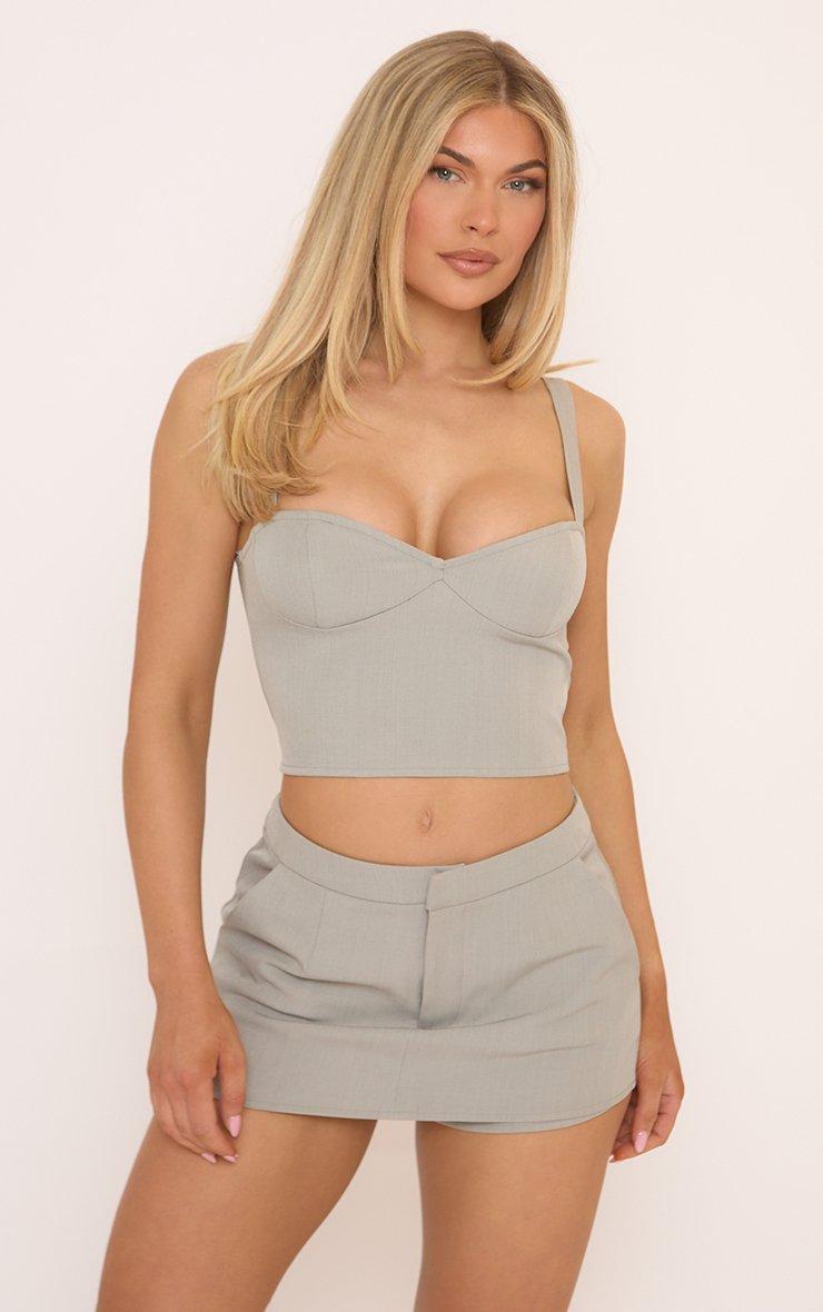 Bandeau Cut Out Buckle Detail Top In Grey Faux Leather