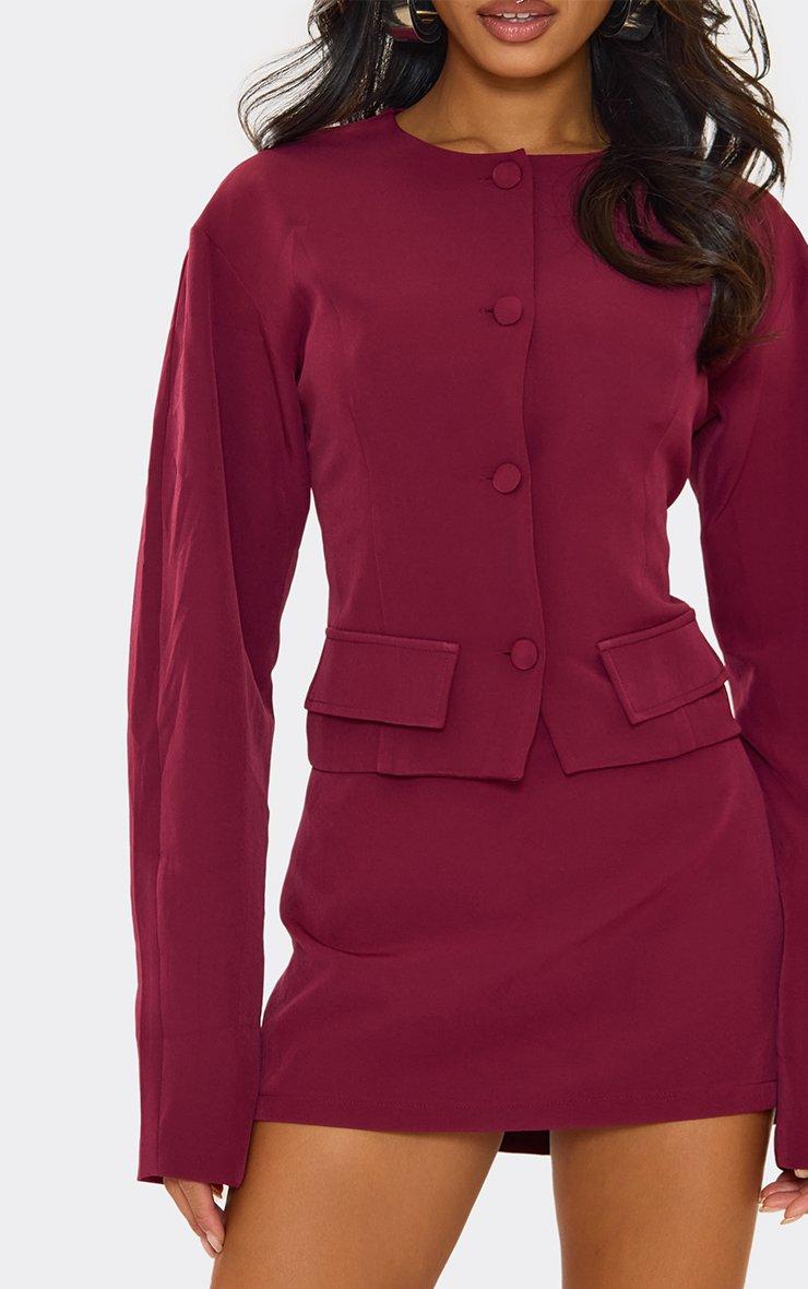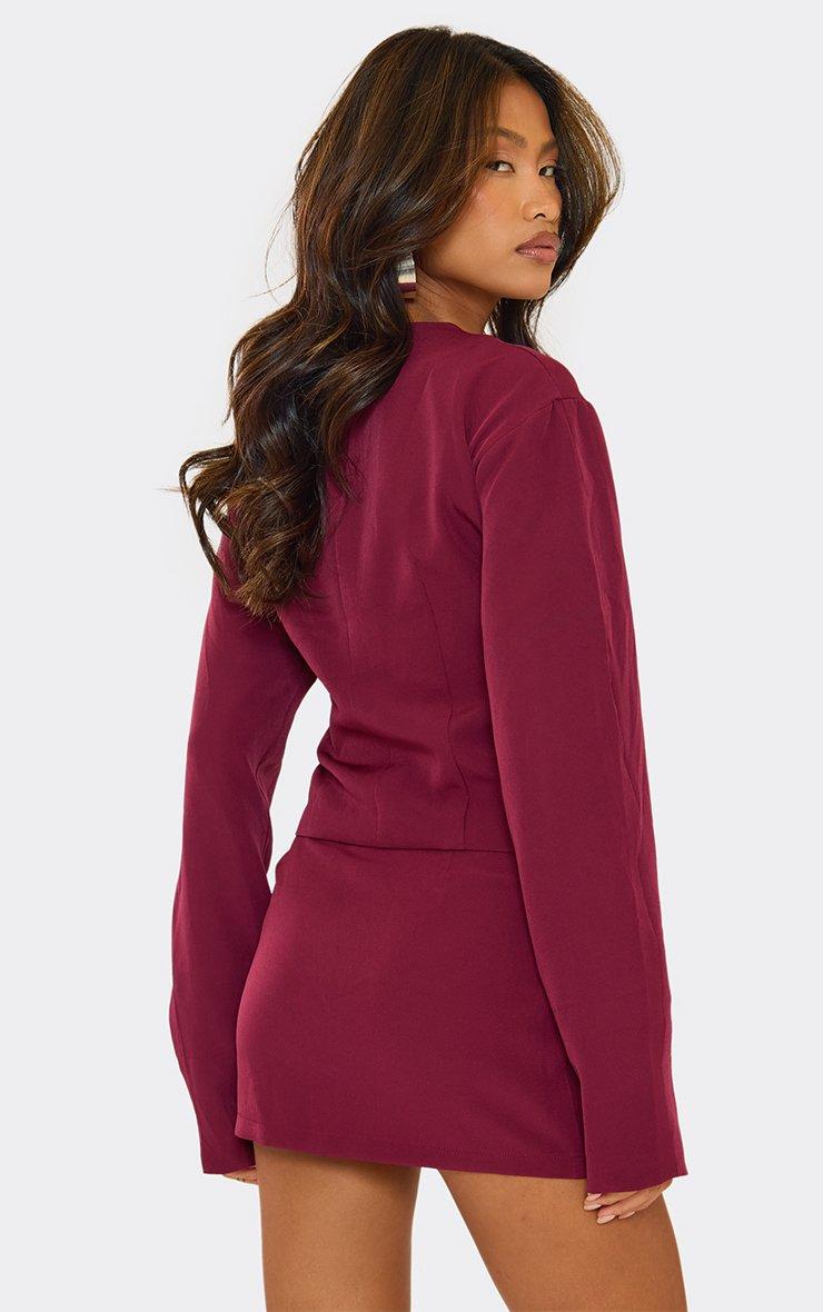 Long Sleeve Button Front Tailored Blazer And Mini Skirt Co-Ord Set In Burgundy