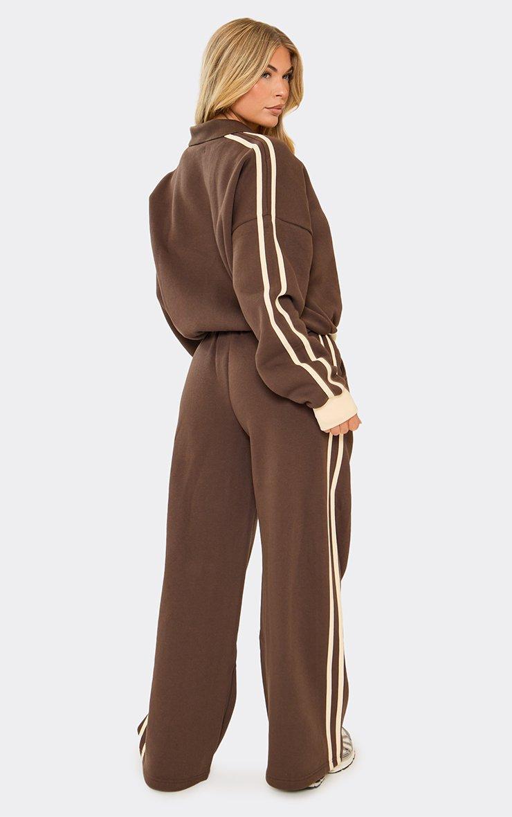 Mid Rise Contrast Stripe Detail Wide Leg Joggers In Chocolate Brown