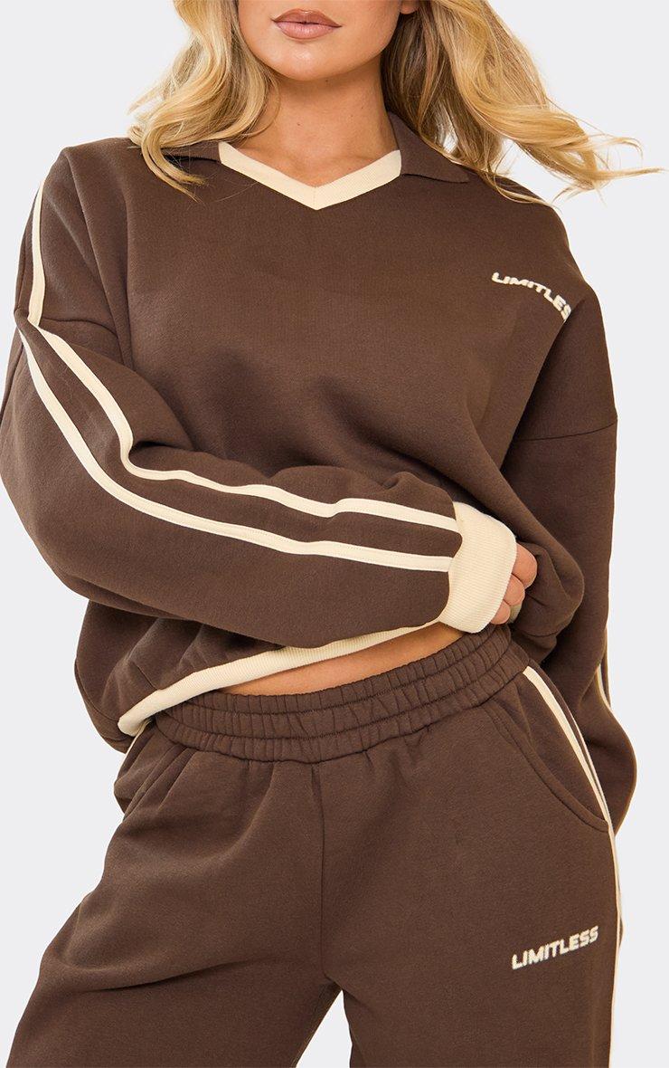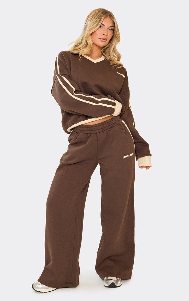 Contrast Stripe Graphic Detail Wide Leg Joggers In Chocolate Brown