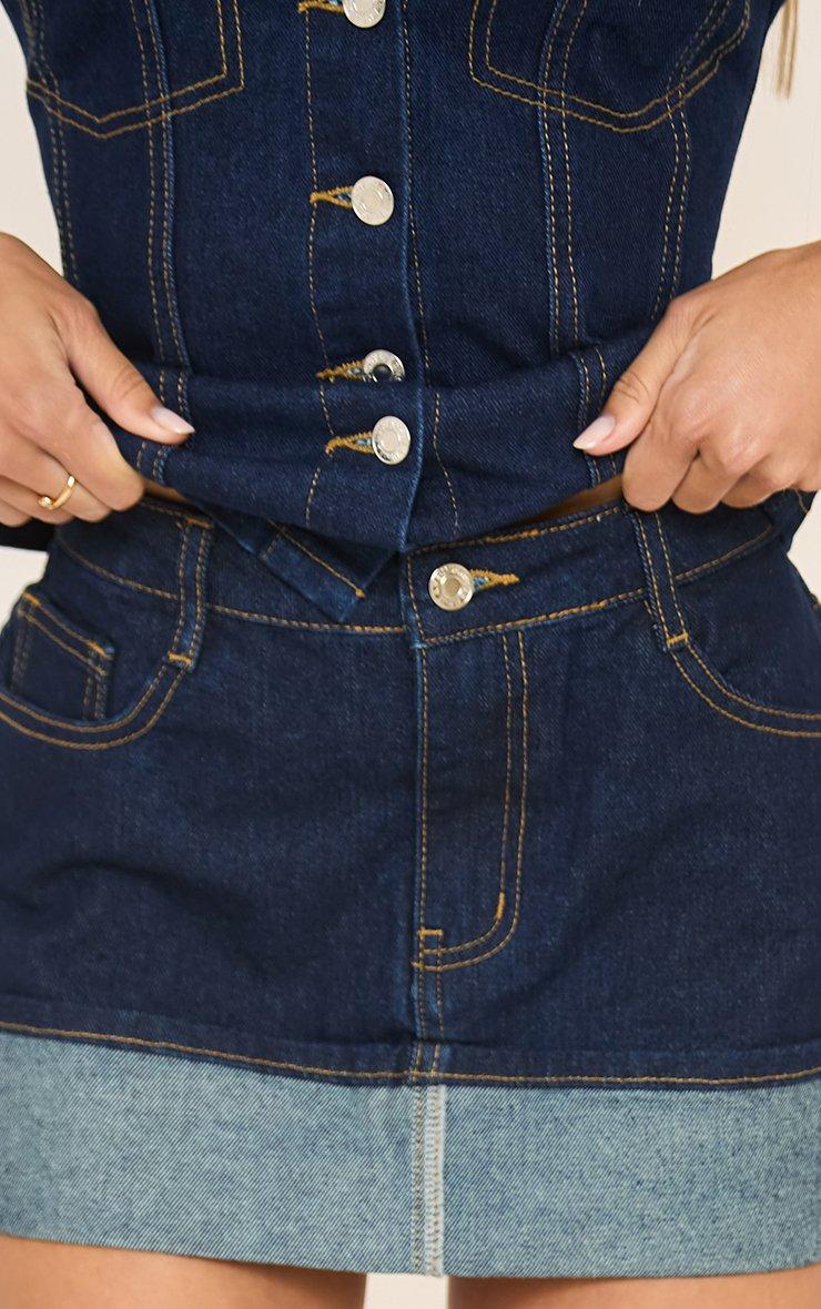 mid rise contrast turned up hem detail mini skirt in blue indigo denim