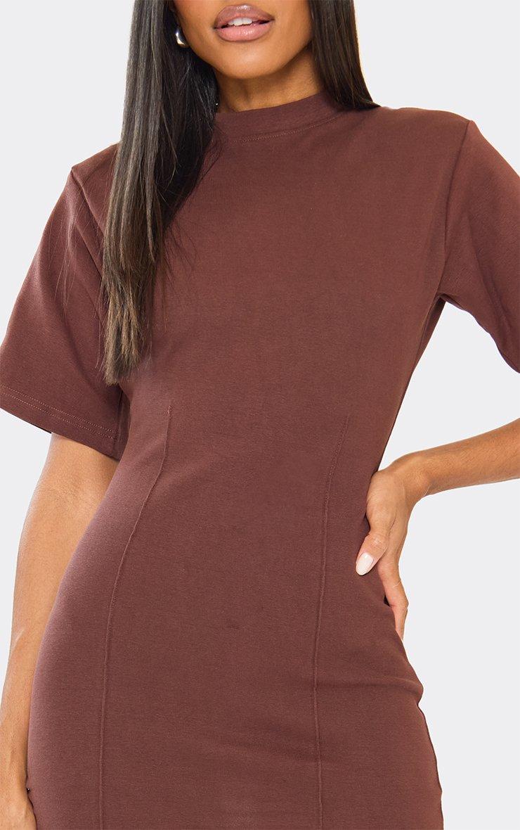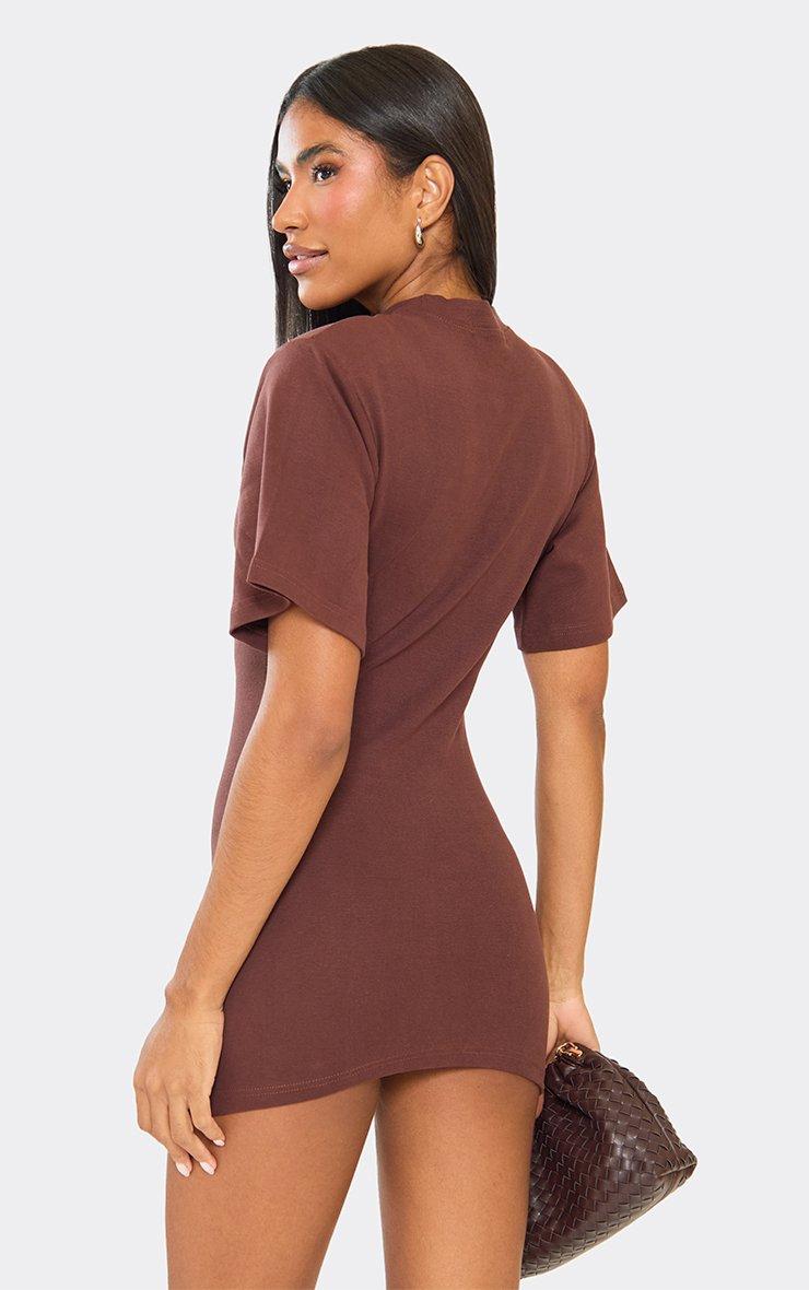 V Neck Plunge Ruched Detail Mini Dress In Chocolate Brown