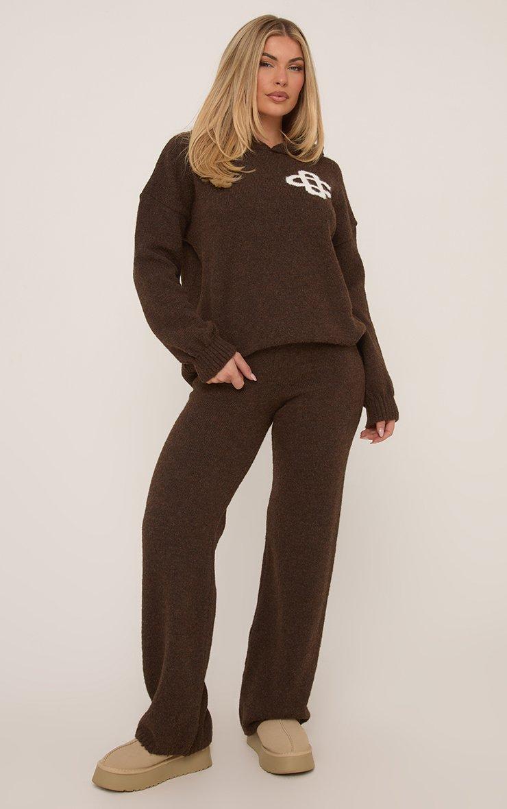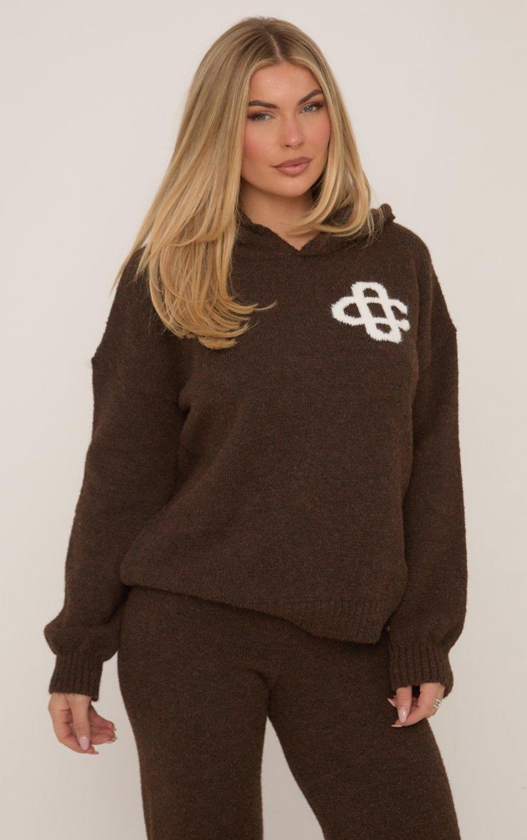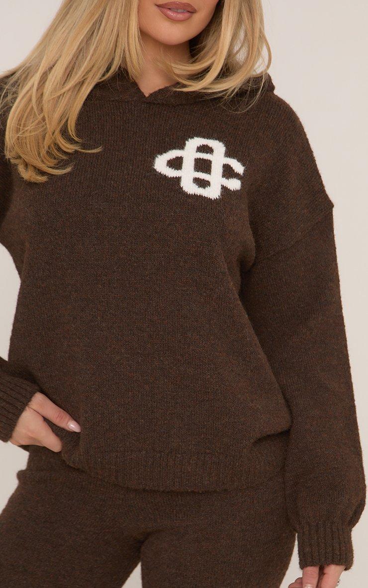 Long Sleeve Swirl Detail Hoodie In Brown Premium Knit