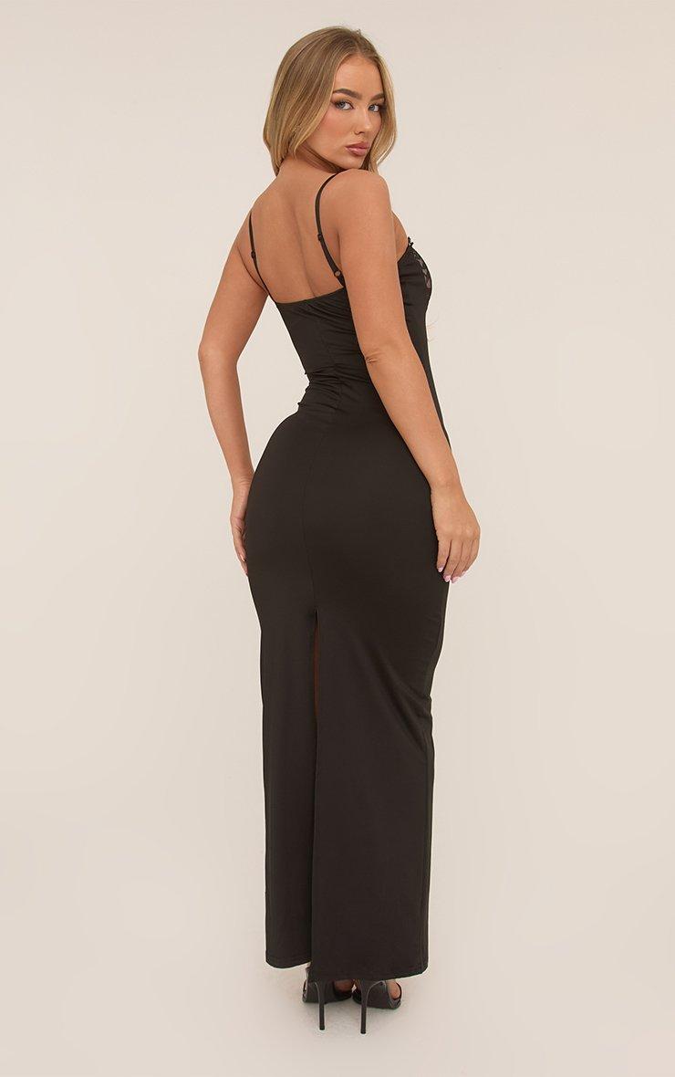 Contrast Lace Detail Strappy Maxi Dress In Black