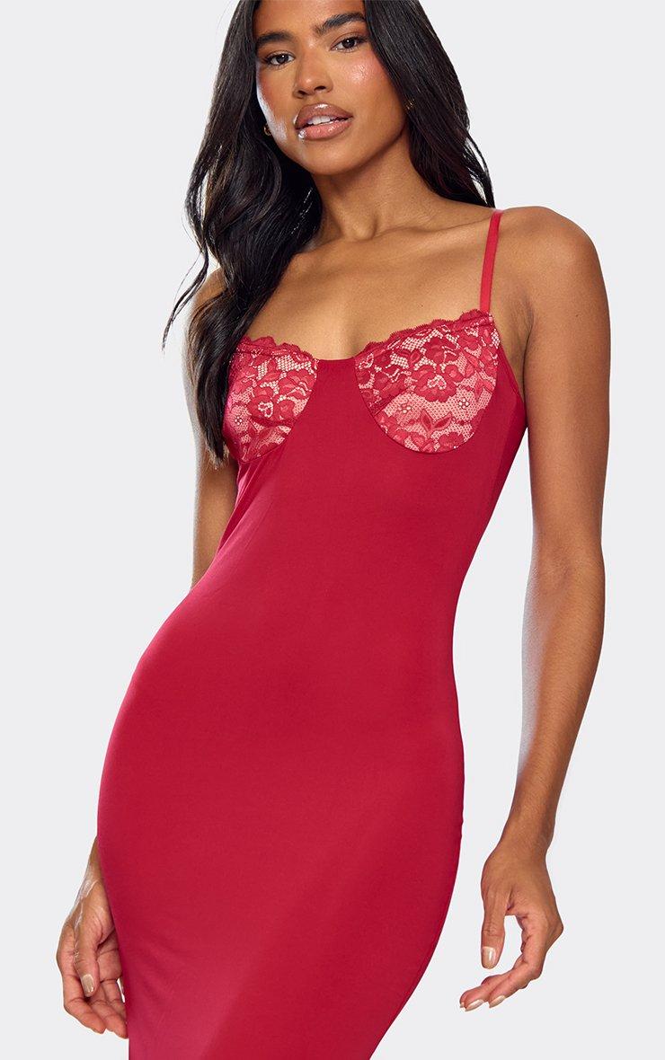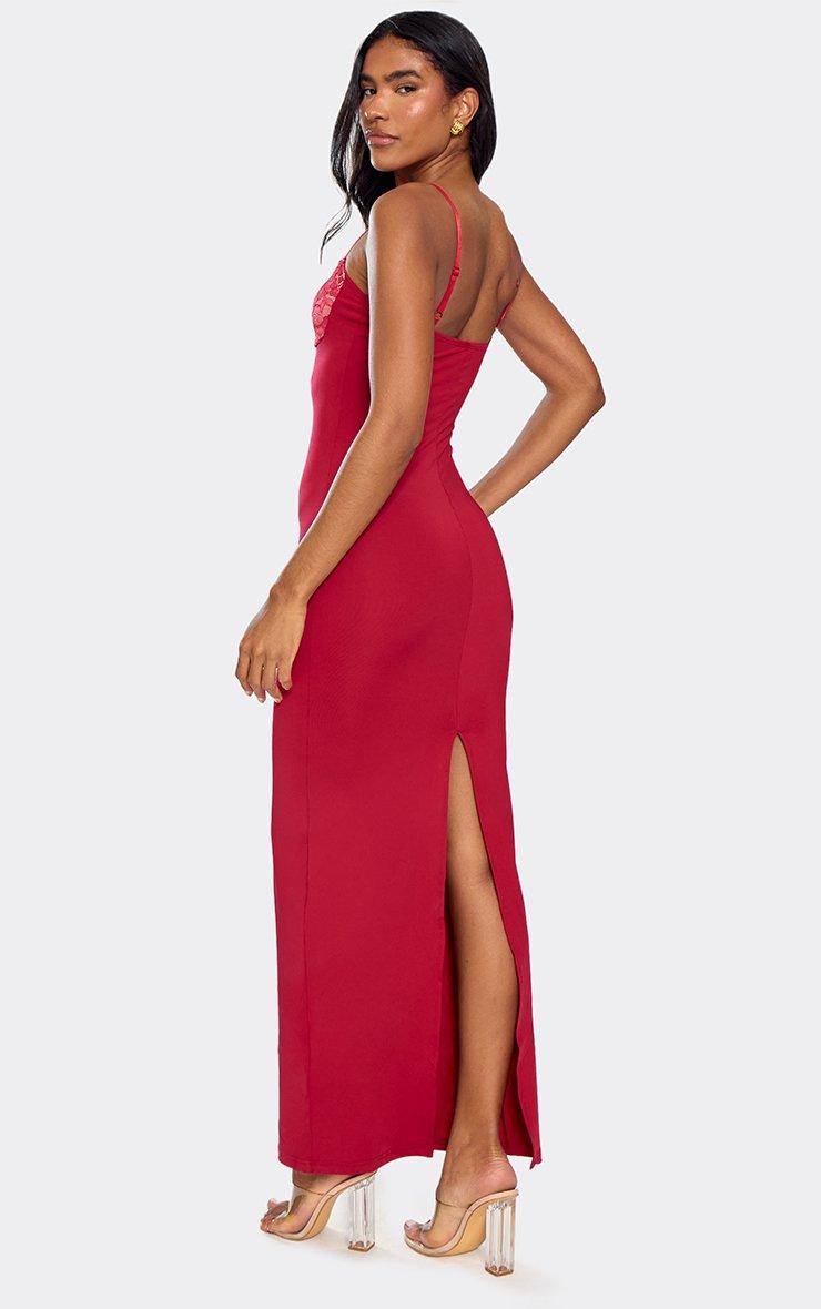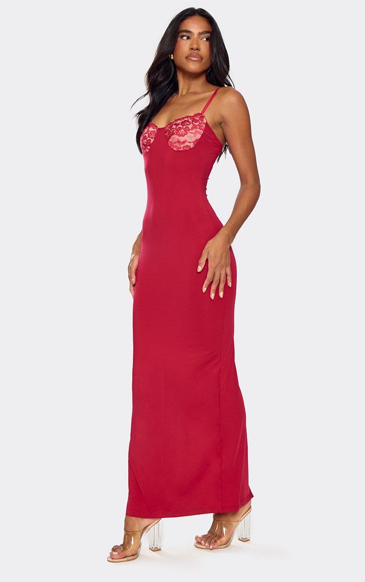 Contrast Lace Detail Strappy Maxi Dress In Red