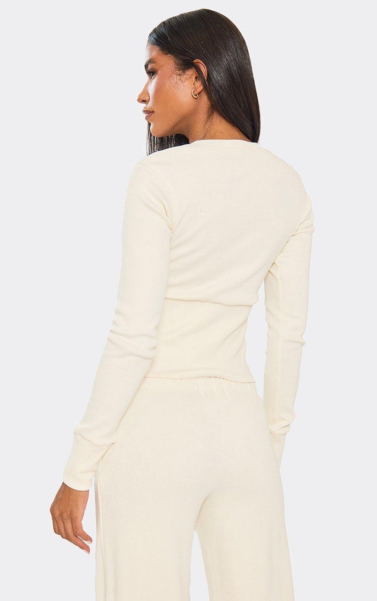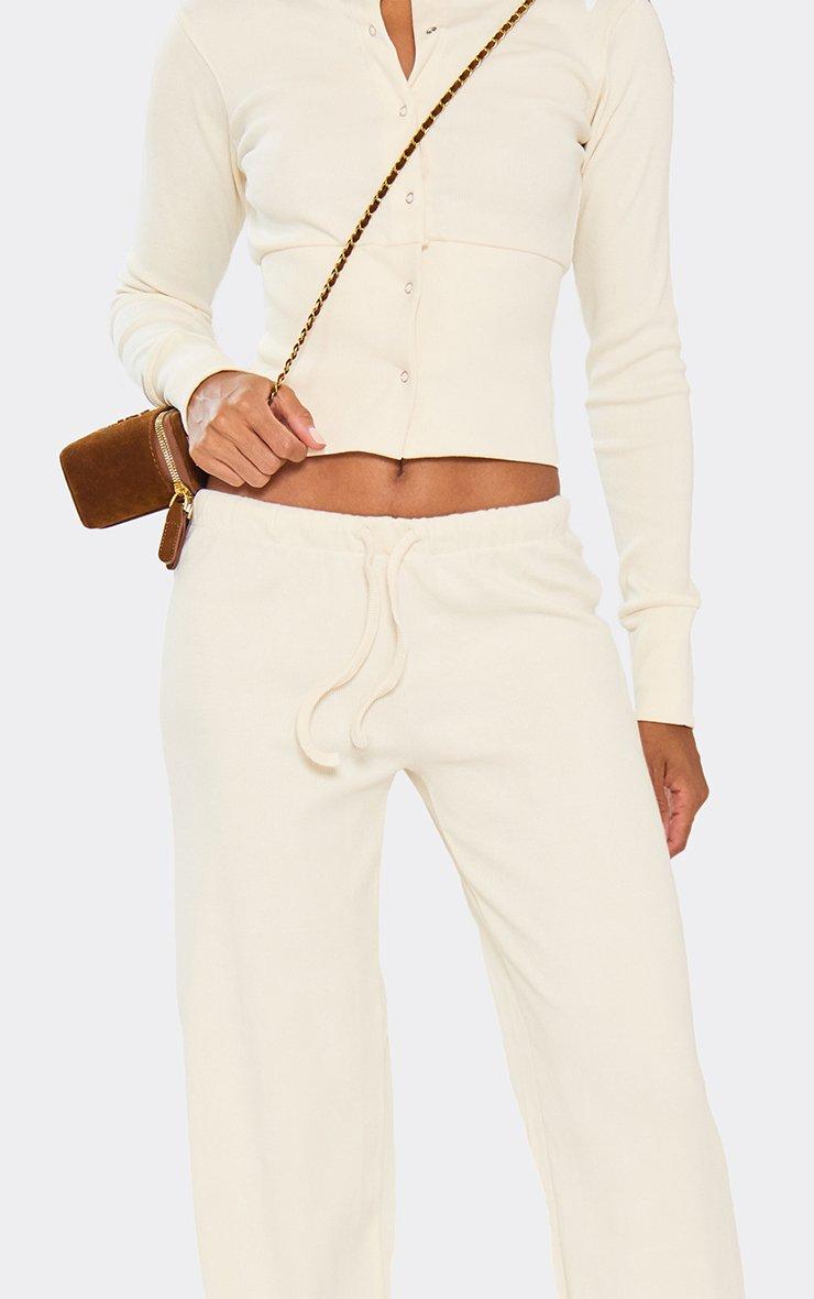 Drawstring Waist Straight Leg Trousers In Off White Ribbed