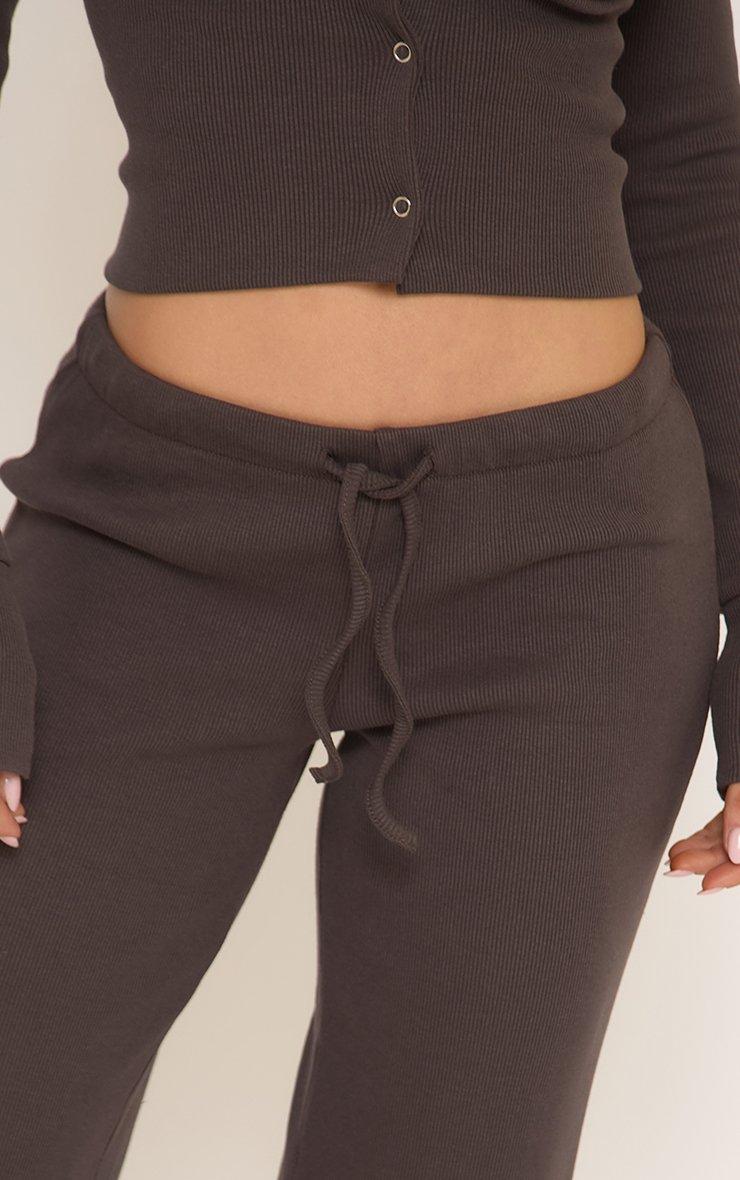Low Rise Wide Leg Trousers In Chocolate Brown Ribbed