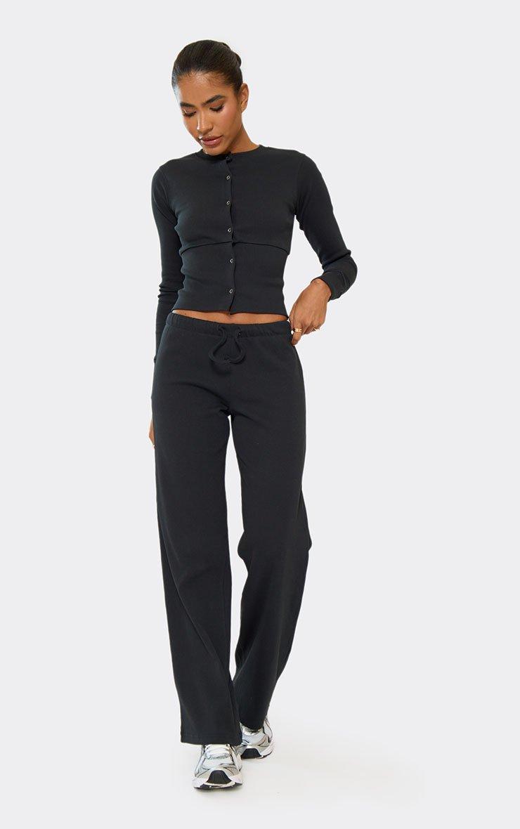 Elasticated Waist Wide Leg Joggers In Chocolate Brown