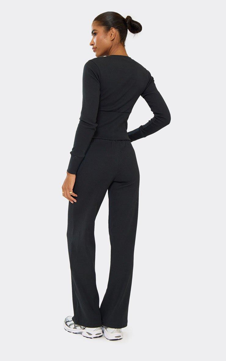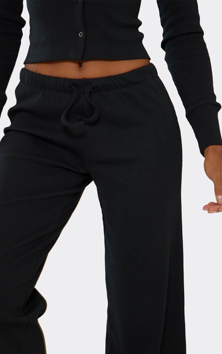mid rise drawstring waist straight leg trousers in dark navy ribbed
