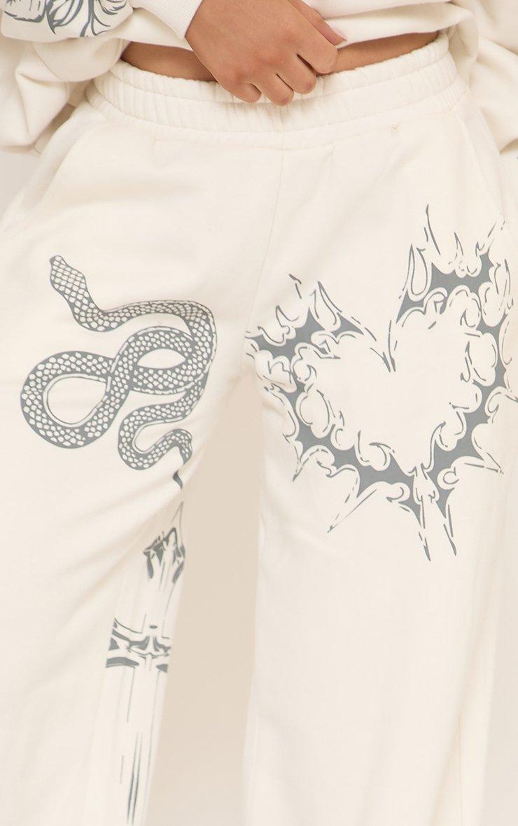 high waist contrast print detail wide leg joggers in cream