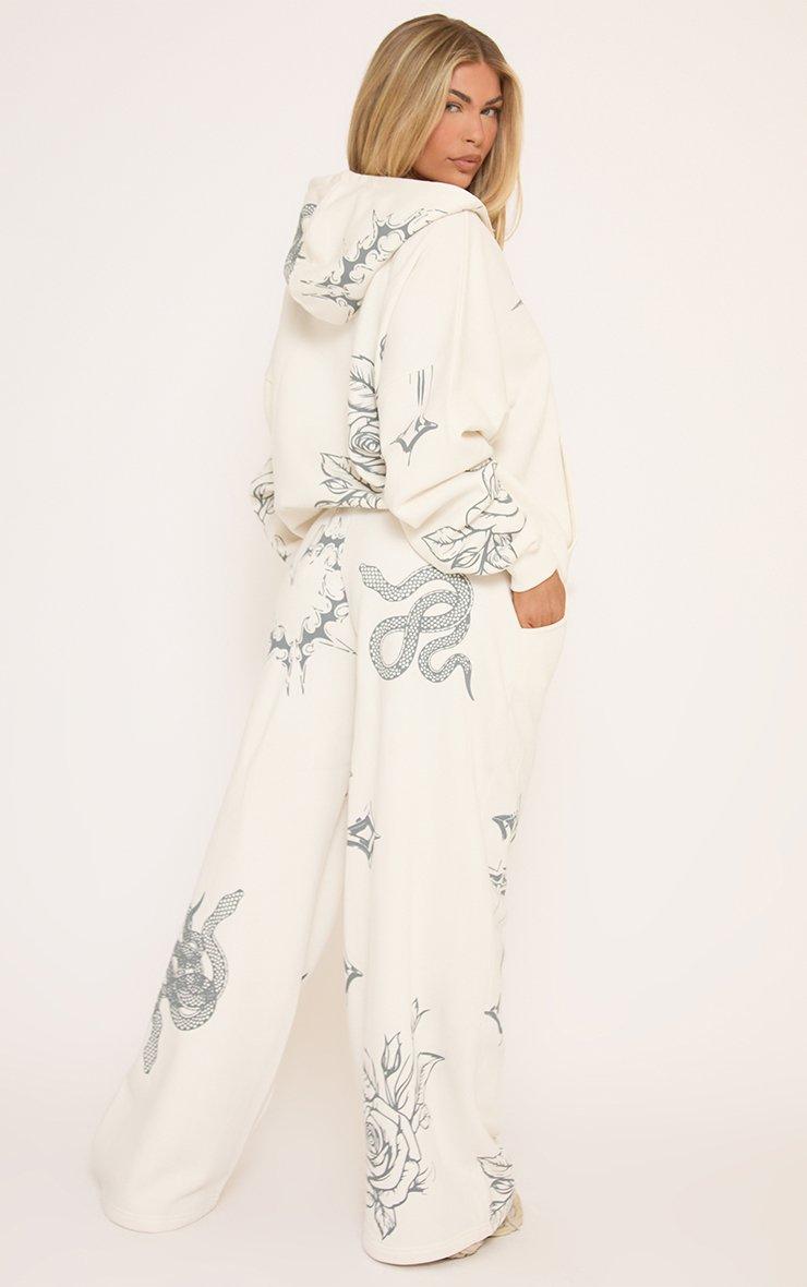 High Waist Contrast Print Detail Wide Leg Joggers In Cream