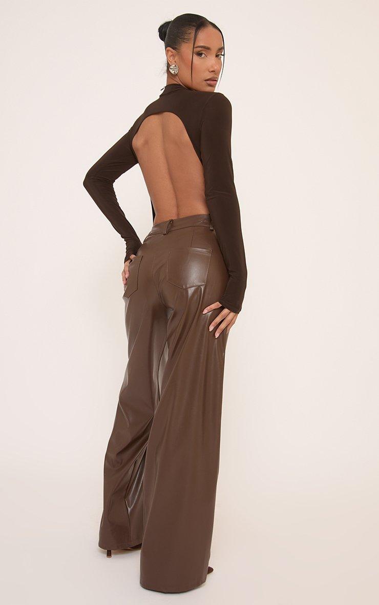 Mid Rise Tailored Trousers In Chocolate Brown Faux Leather