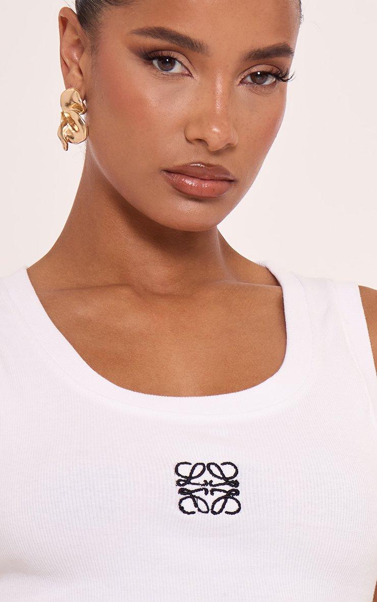 Scoop Neck Contrast Swirl Detail Sleeveless Crop Top In White